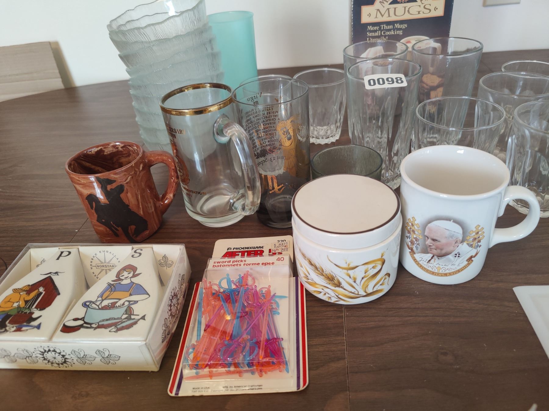 Glasses, bowls, foldable cutting board, salt & pepper shakers & more.