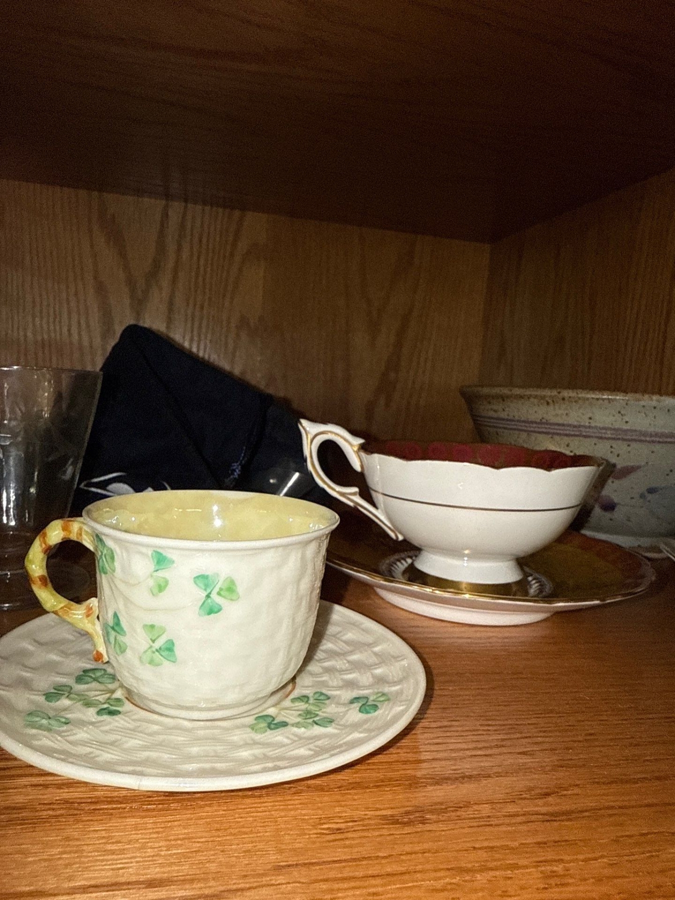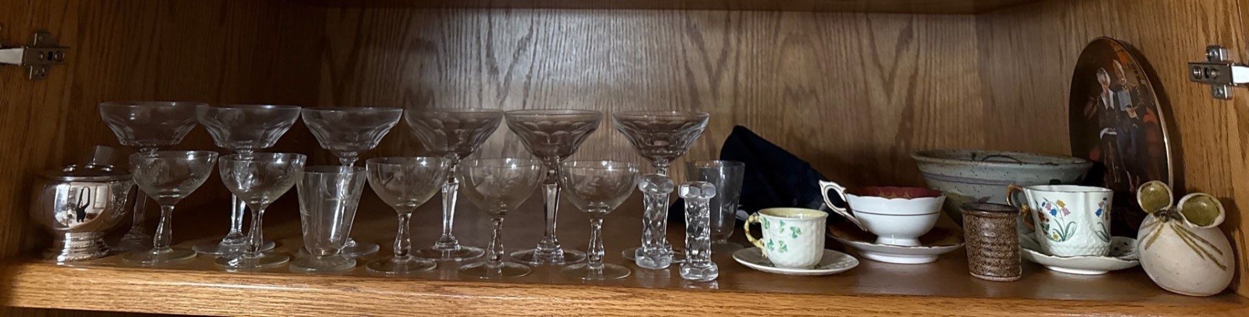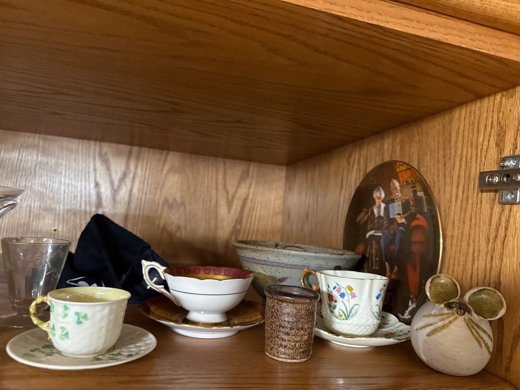 Glassware, Stoneware, China Cups & Saucers (Beleek, Aynsley, Royal Stafford)