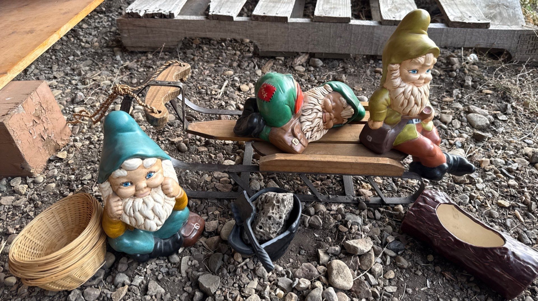 Gnome What I'm Saying - Antique Toboggan w/ Garden Gnomes & More 8T