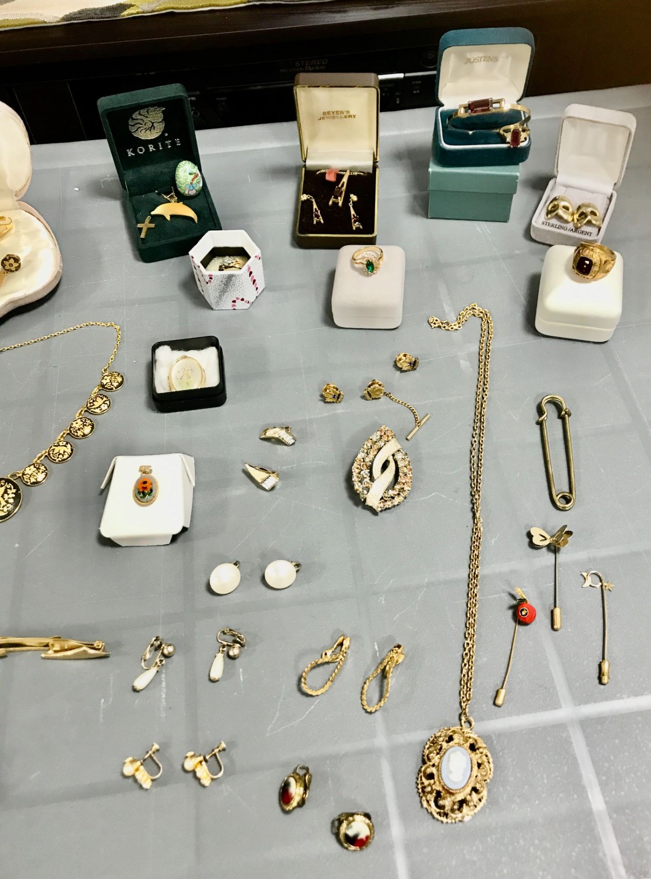 Gold Colour Vintage Jewellery incl Cameo Pendant, Italian Earring/Necklace/Ring Set, Amethyst Necklace/Earring/Bracelet/Ring Set