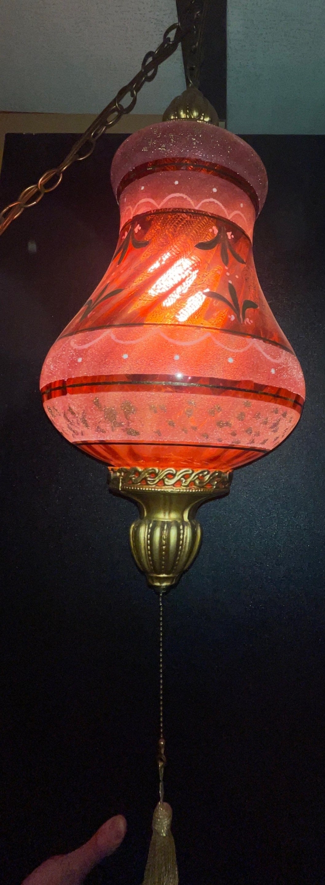 Gold & Cranberry Colored Retro Swag Lamp W/ Pull Switch 18T