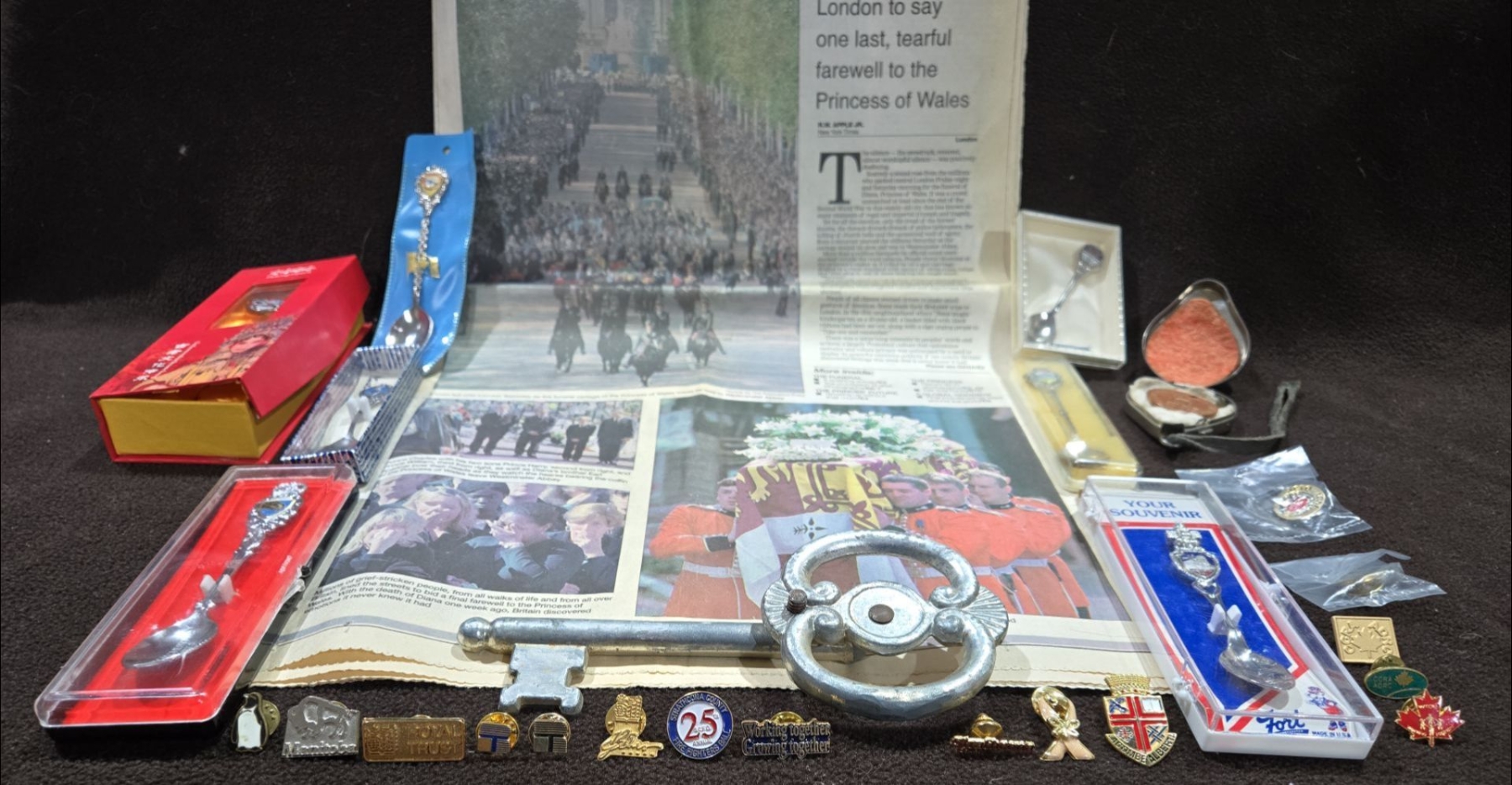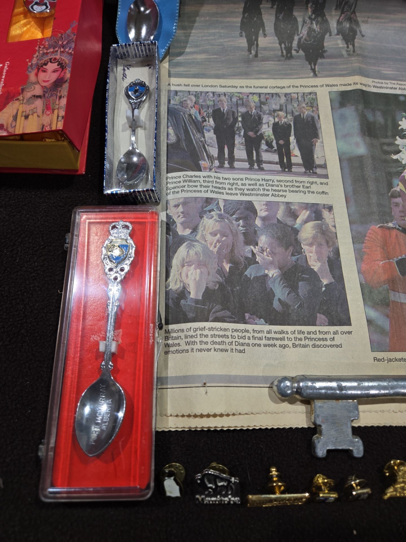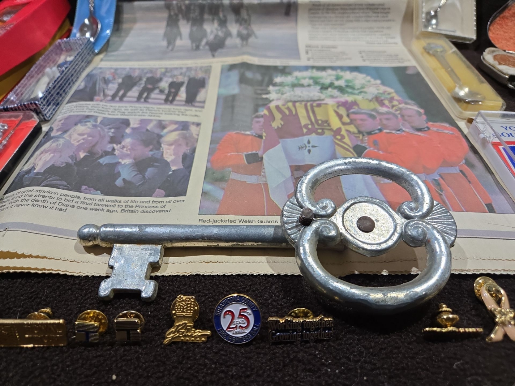 Goodbye England Rose Newspaper Article + Estate pins, Queens Jubilee Copper Coin & More