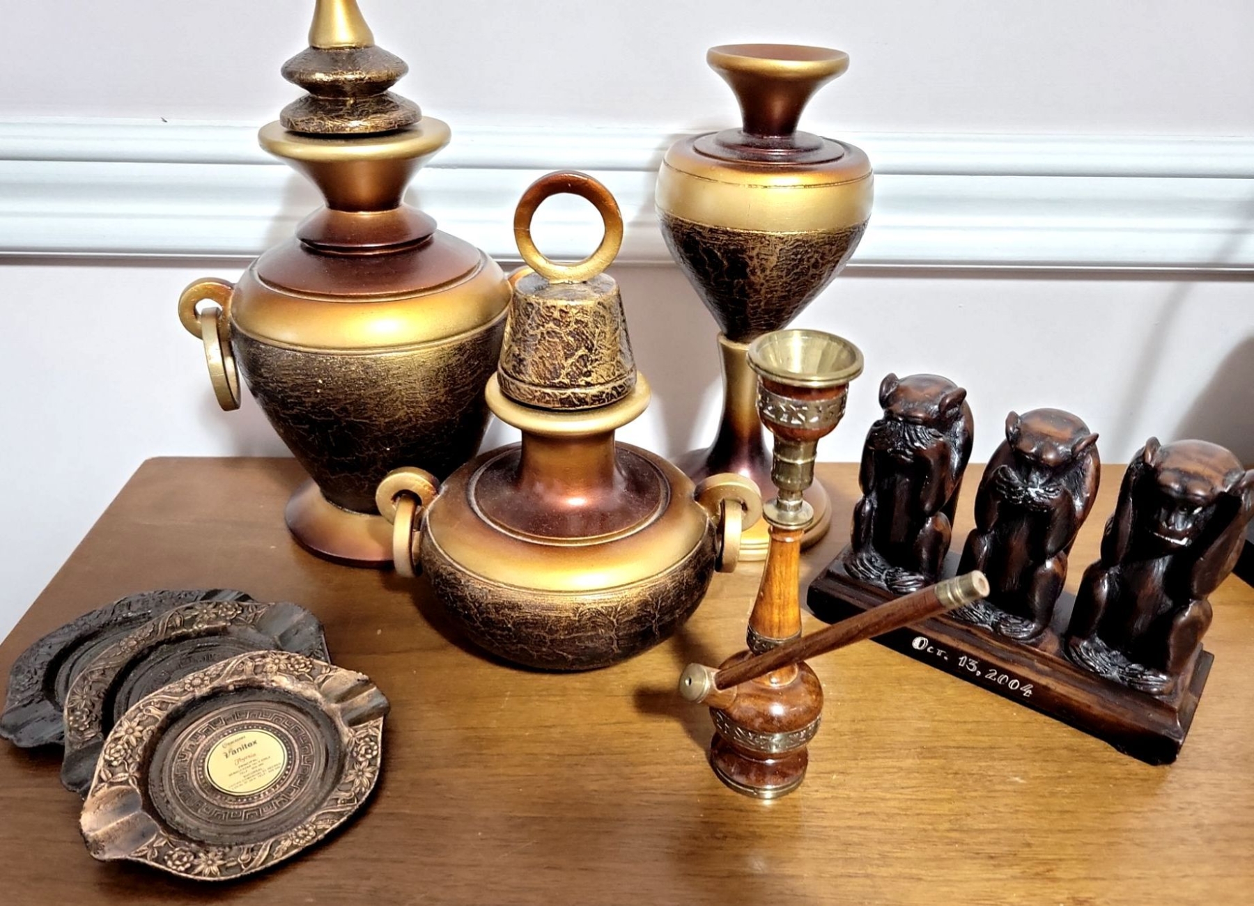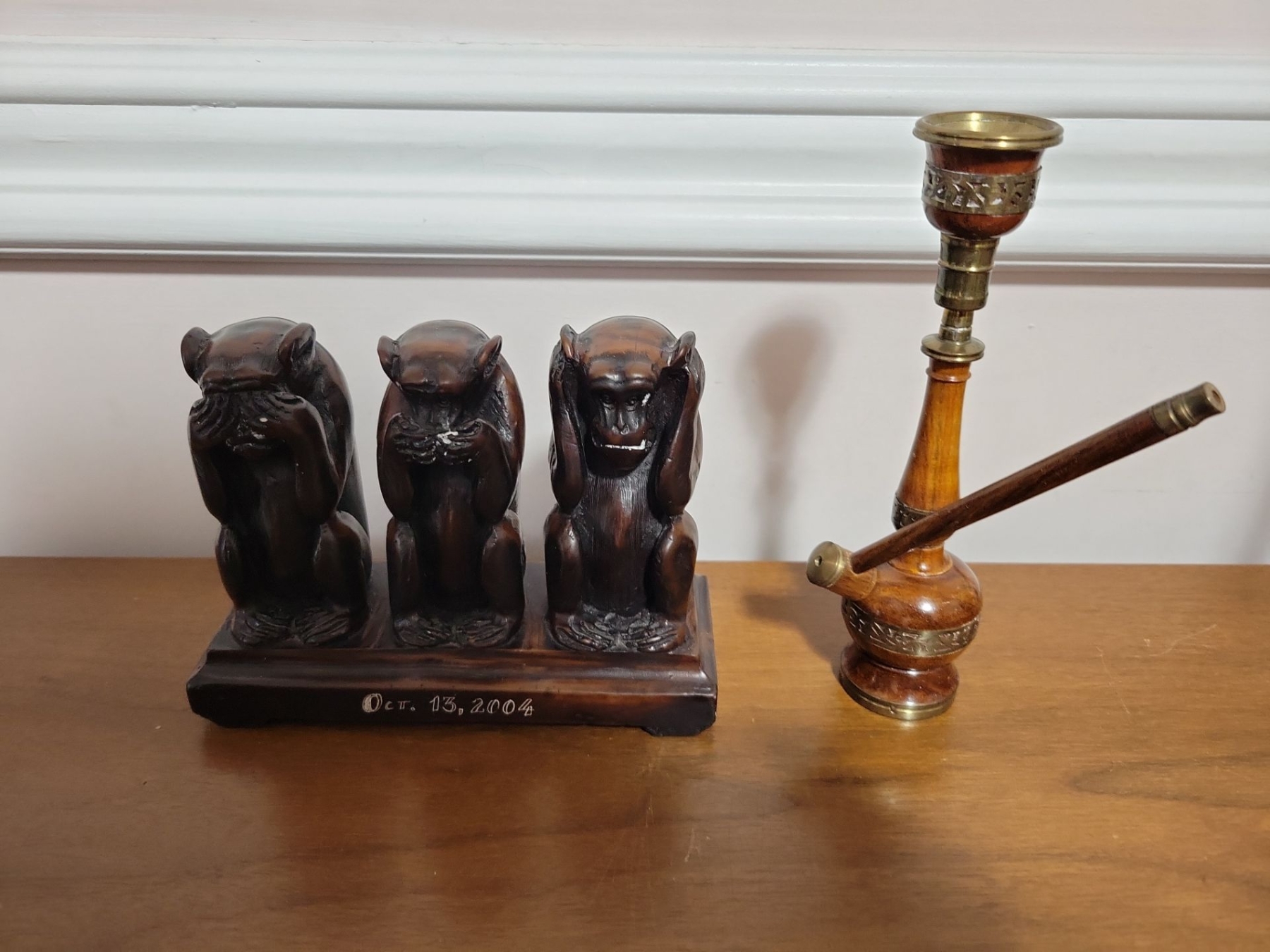 Gorgeous Alchemy Urns 10T  No Evil Idol Hand Carved Tobbacco Pipe Copper & Bronze Ash Trays