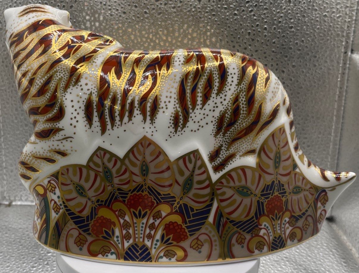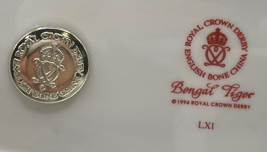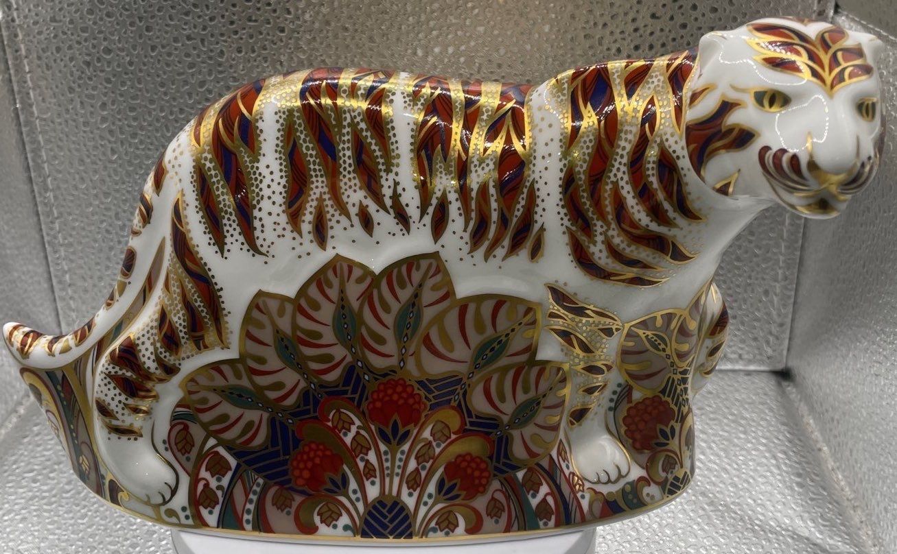 Gorgeous English Royal Crown Derby Bone China 'Bengal Tiger' Figurine - 8In Long