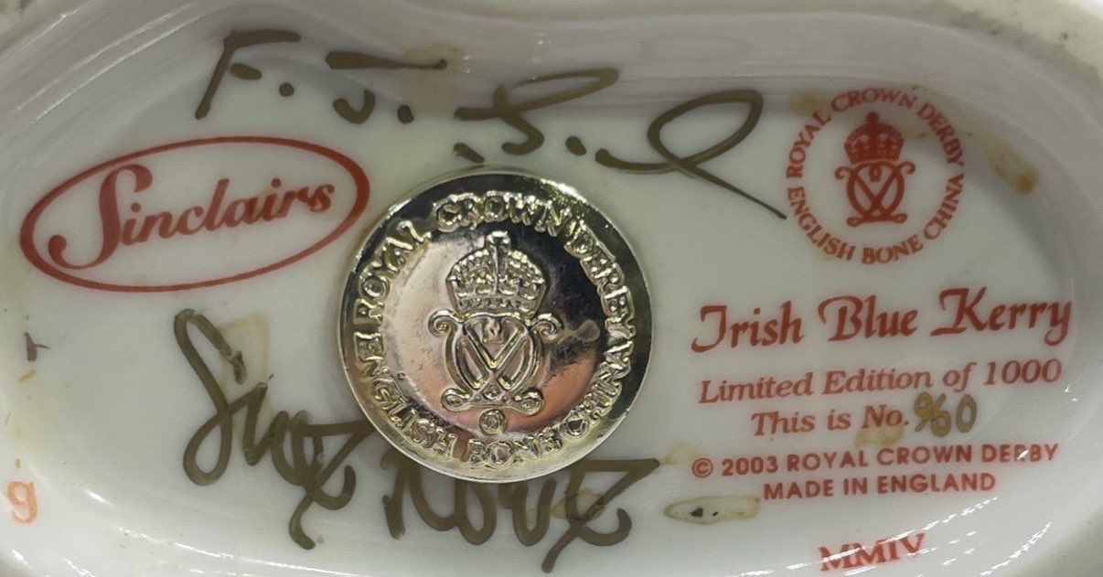 Gorgeous English Royal Crown Derby Bone China Irish Blue Kerry 960/1000 - 5.5In Tall