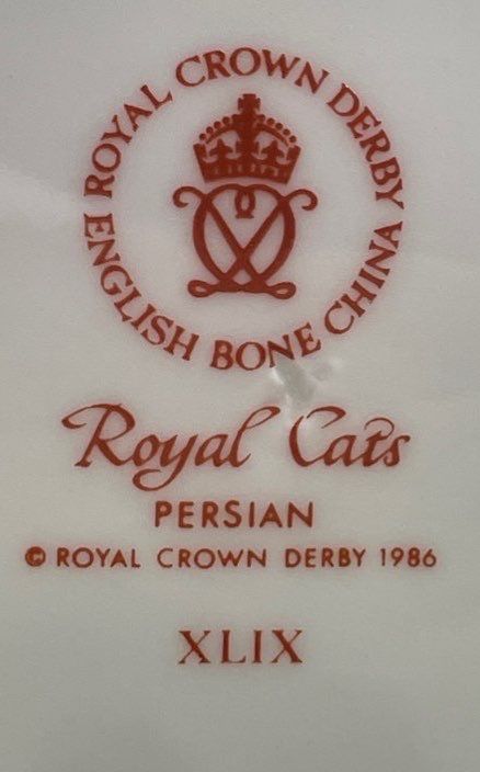 Gorgeous English Royal Crown Derby Bone China Persian 'Royal Cats' Figurine - 7In Long