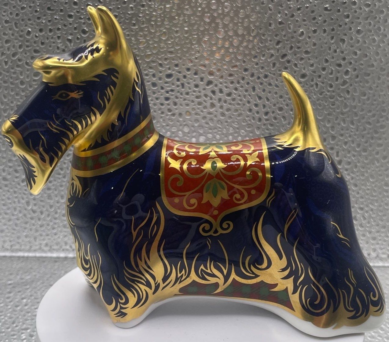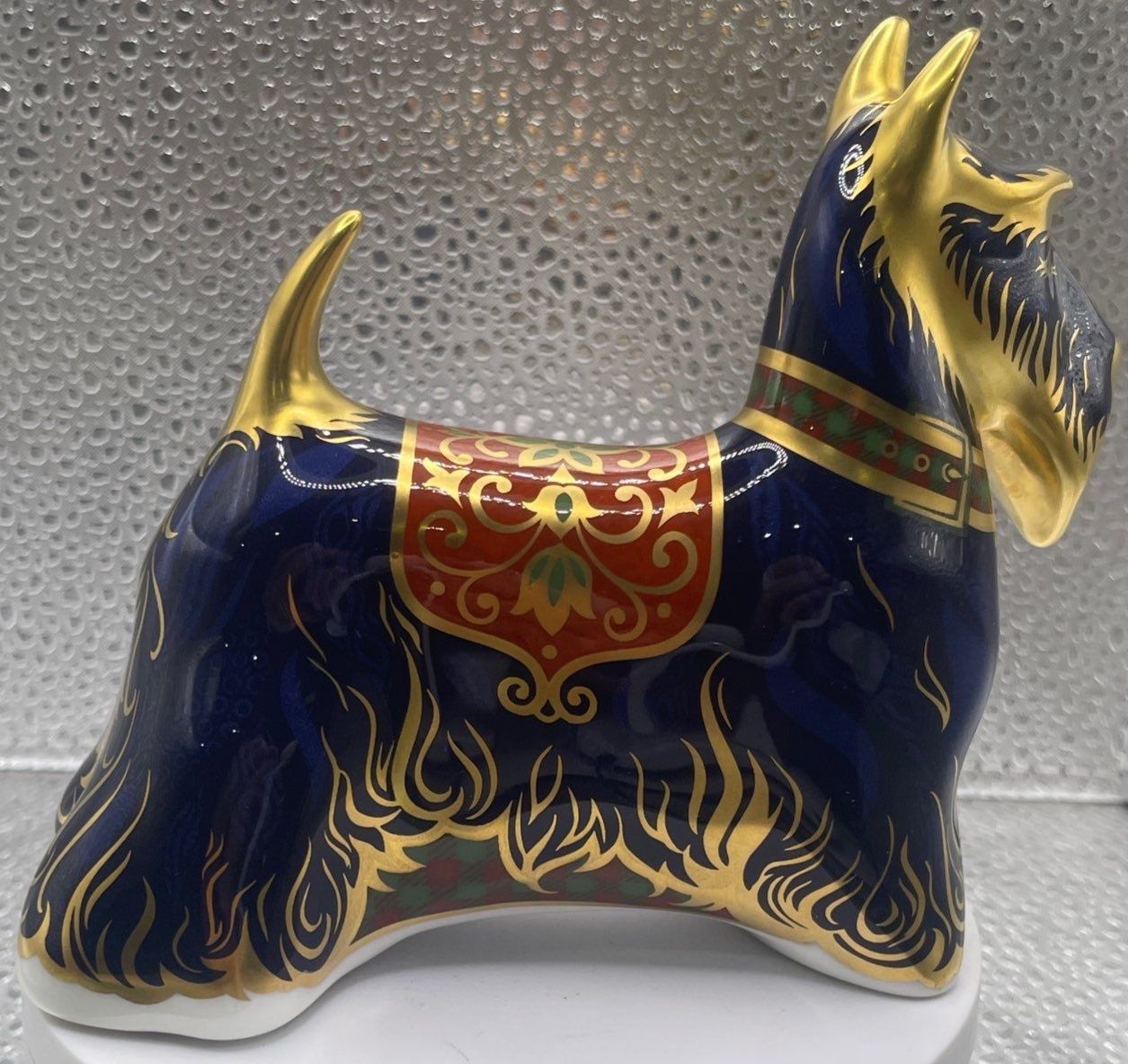 Gorgeous English Royal Crown Derby Bone China Scottish Terrier Figurine - 5In Tall