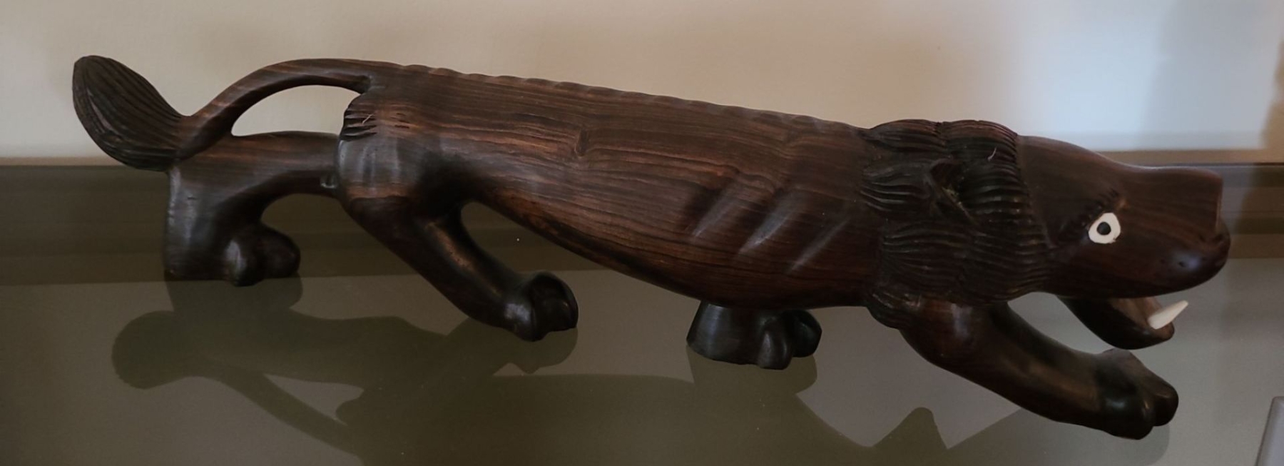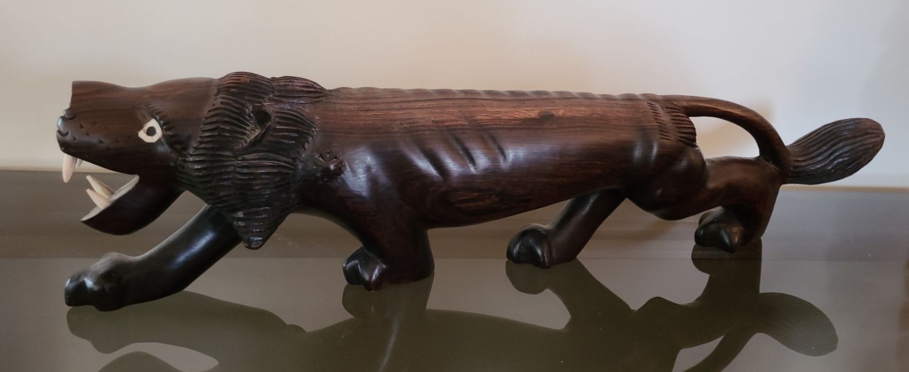 Gorgeous Folk Art Carved Wooden Lion Sculpture, Missing One Wooden Tooth Easy to Replace - 21L