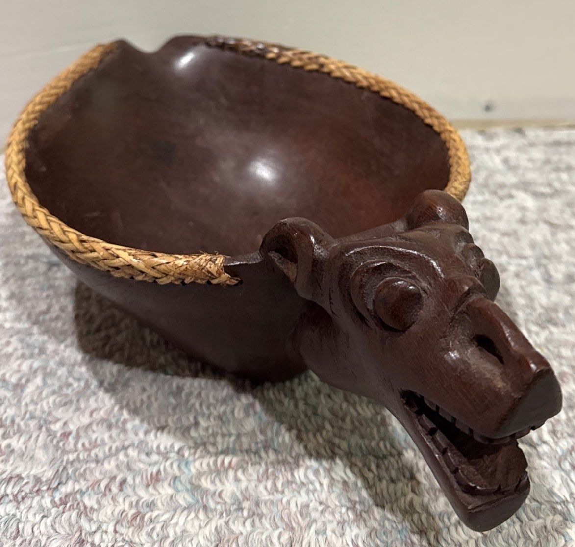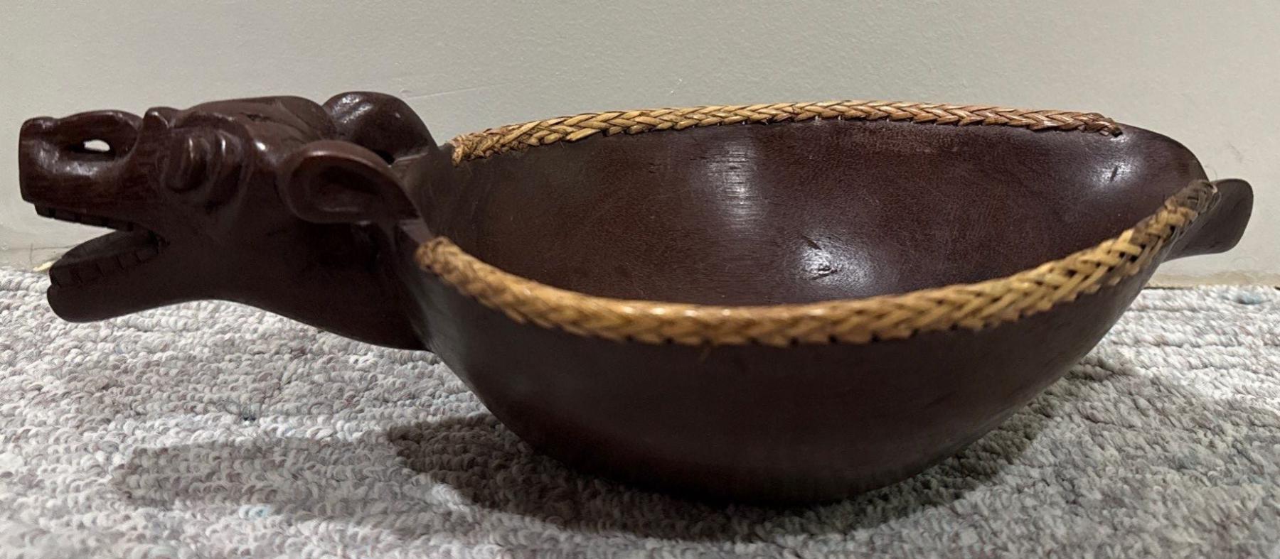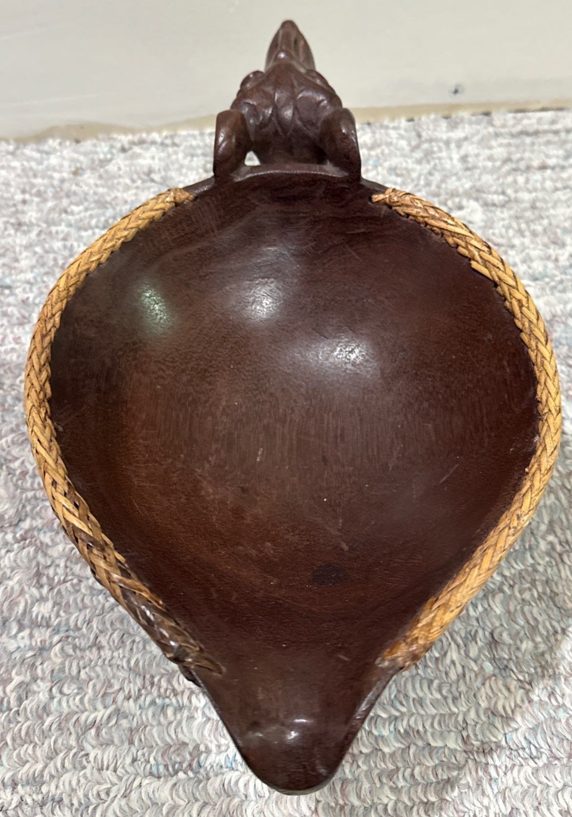 Gorgeous Ironwood Tribal Hand Carved Tray Borneo, Wicker Rim - 12L