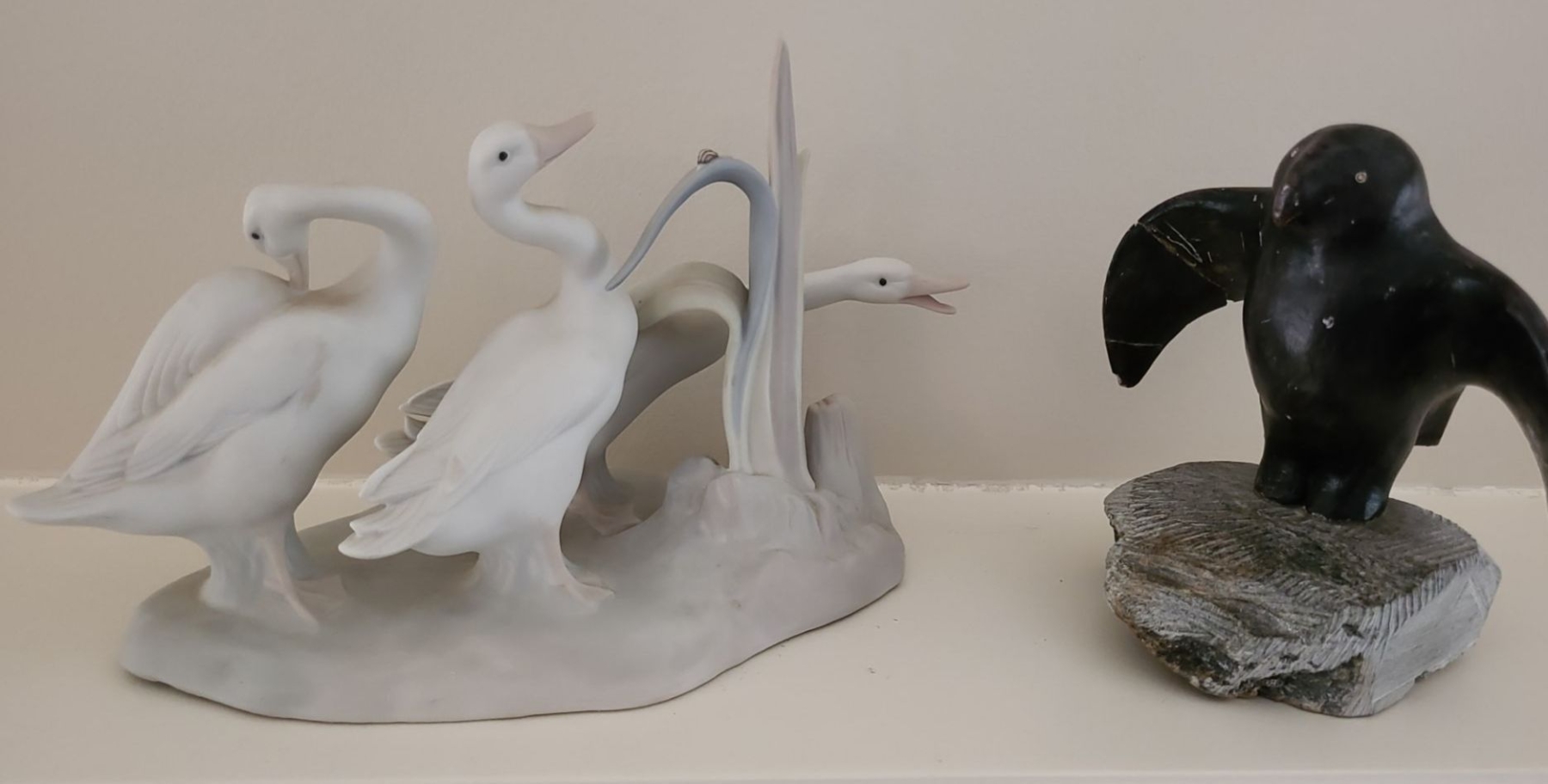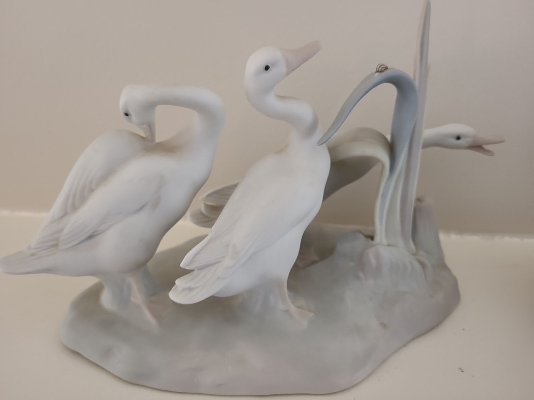Gorgeous LLADRO Geese Scene (8L, 6T) w/ Lovely Stone Carved Bird (Damage)