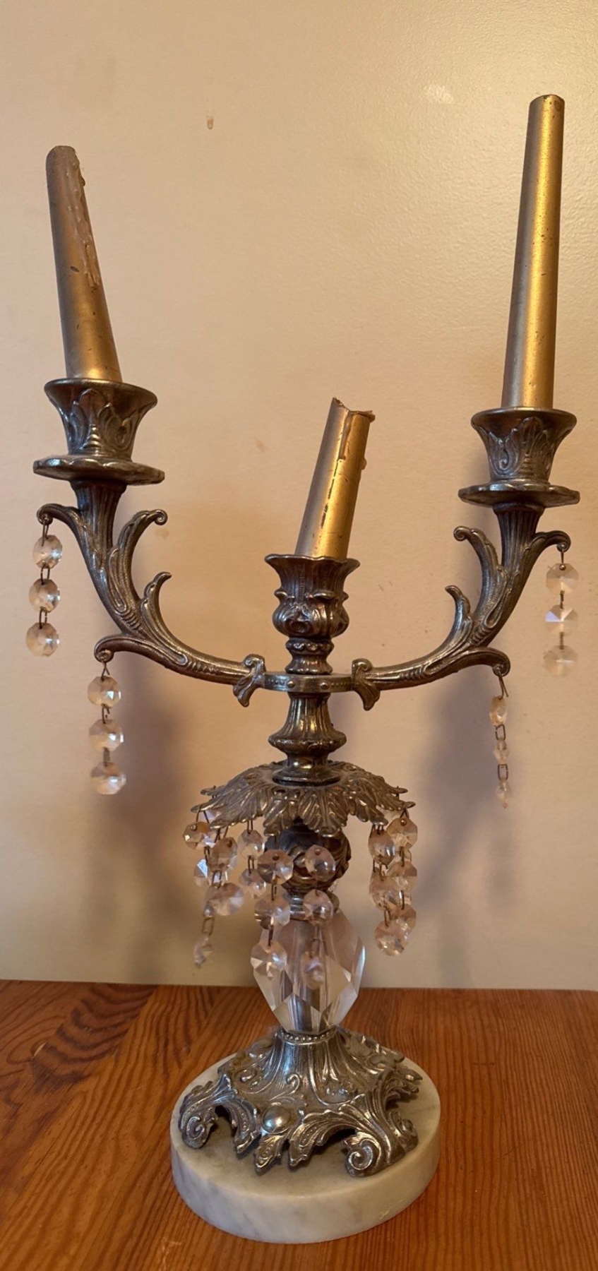 Gorgeous Metal Candelabra w/ Marble Base, Electric Lantern and Lovely Decorative Ship (As Is)