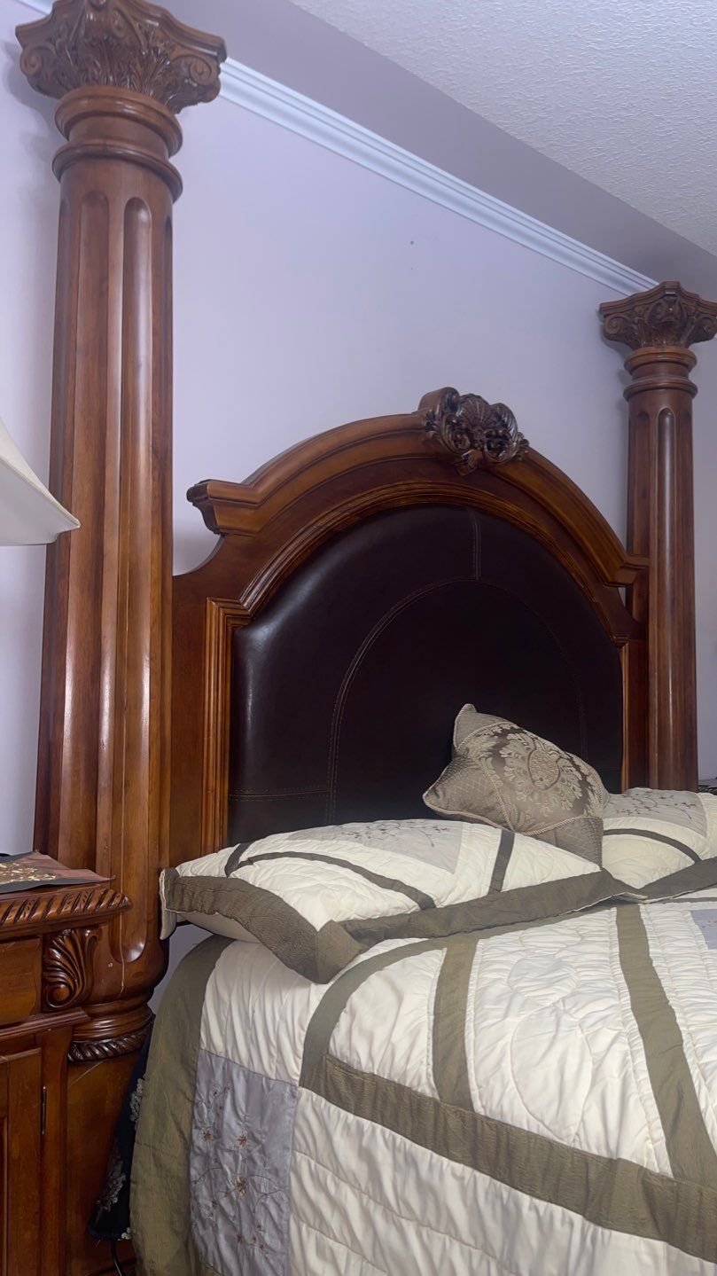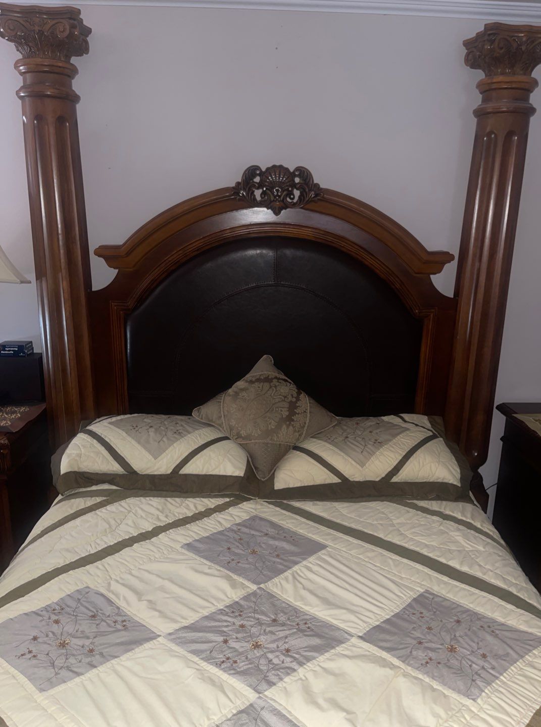 Gorgeous Queen Four Post Bed Bundle - Includes Head Board Frame Mattress & Linens