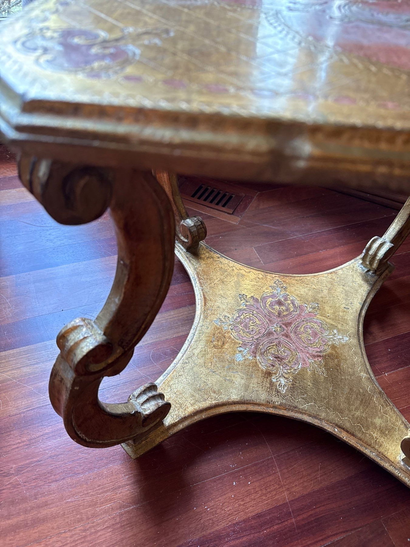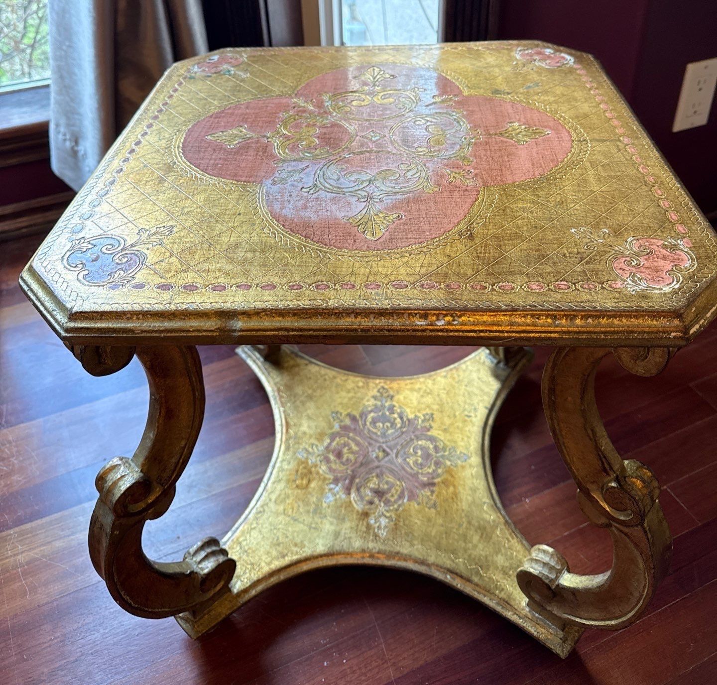 Gorgeous Vintage Florentine Gold Gilt Side Table Pink - 19W, 19D, 20T