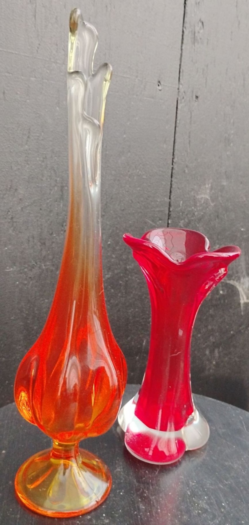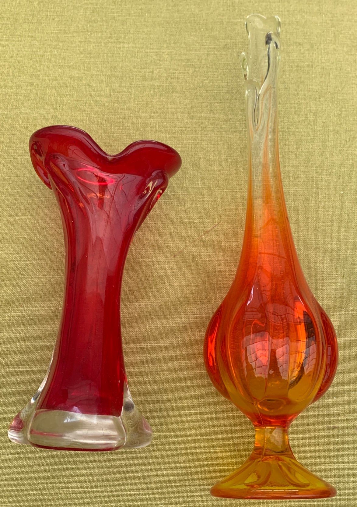Gorgeous Vintage Viking Swung Glass Orange Vase w/ Artful Red Bud Glass Vase
