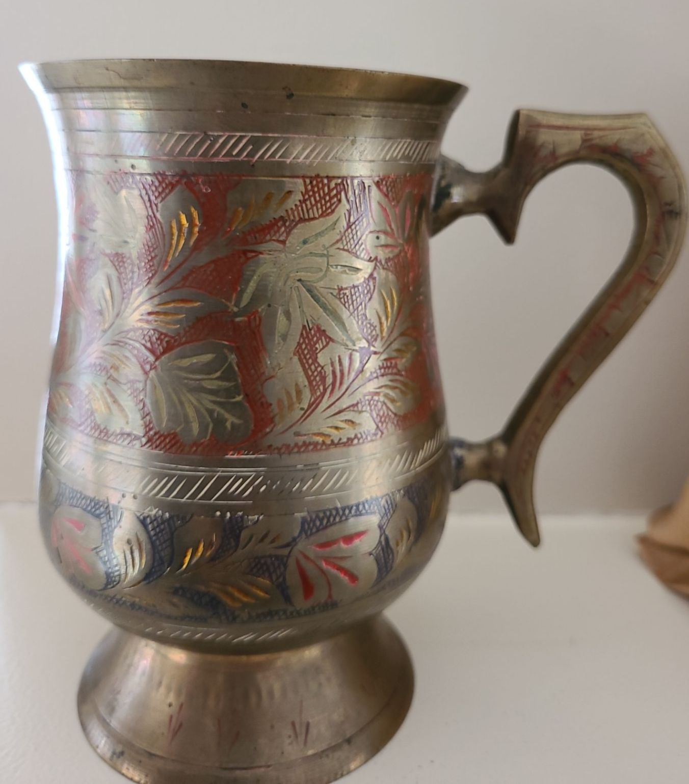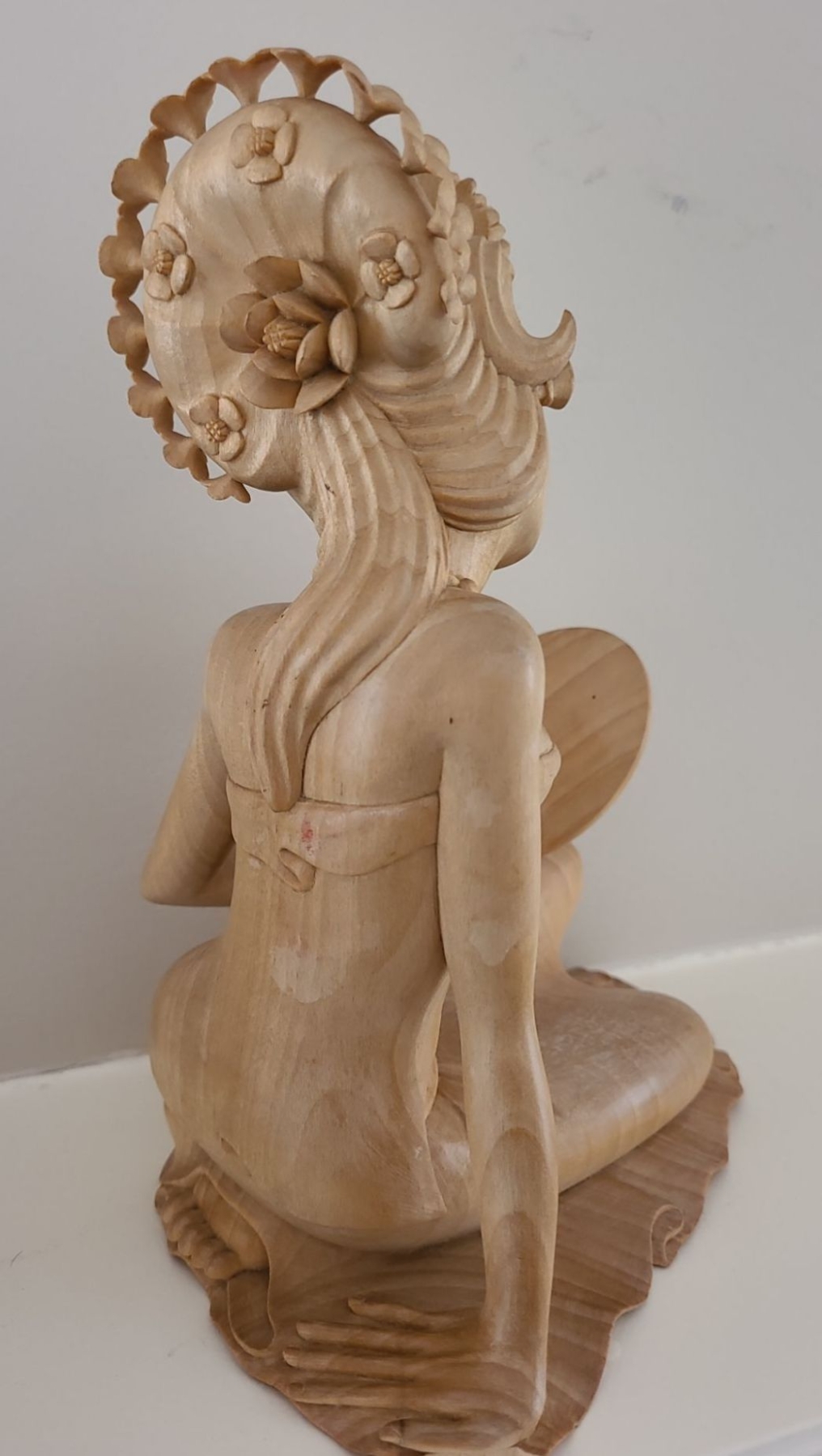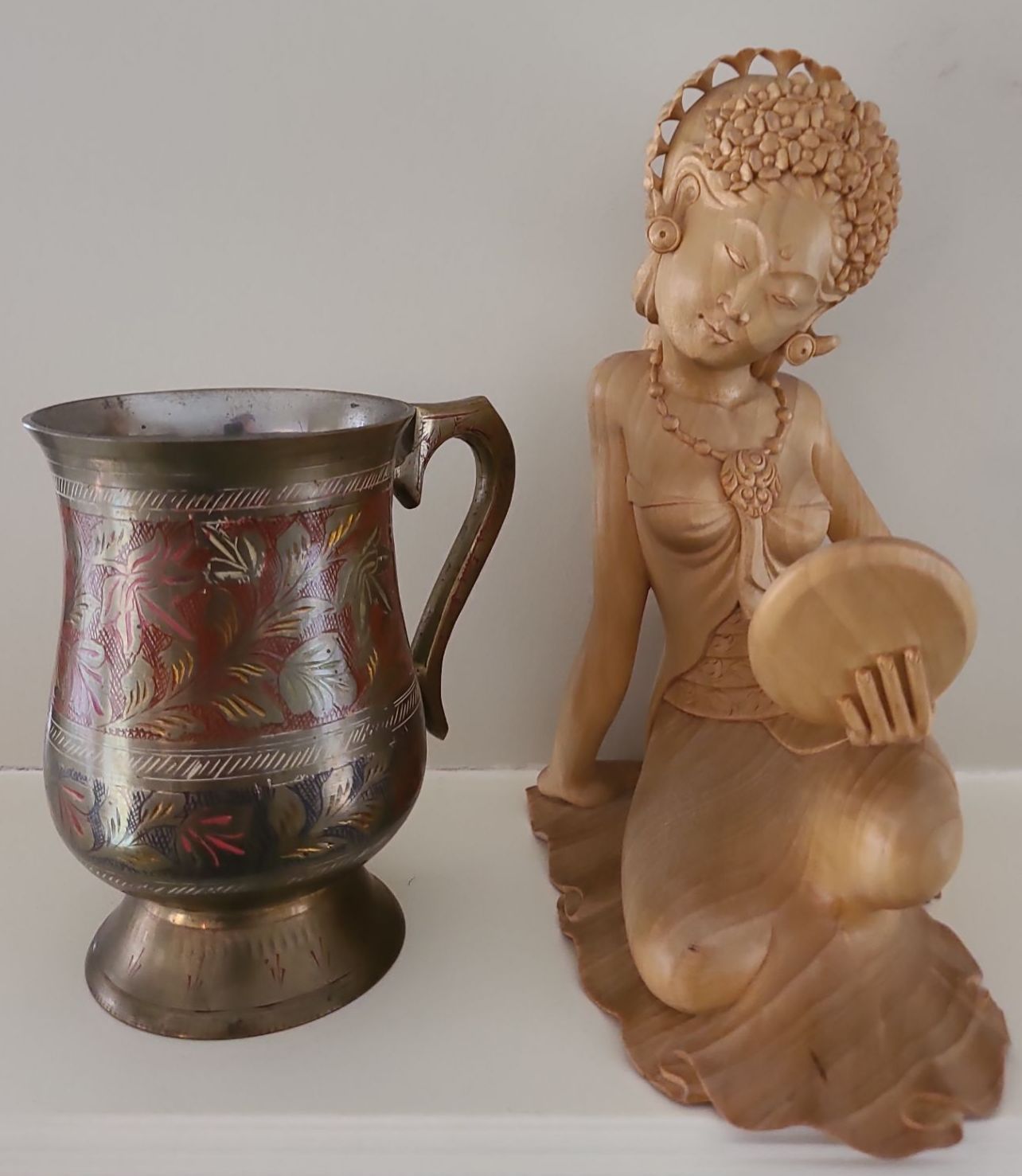 Gorgeous Wood Hand Carved Woman (7W, 9T) w/ Stunning Brass Cup, Hand Painted, Intricate Detailing
