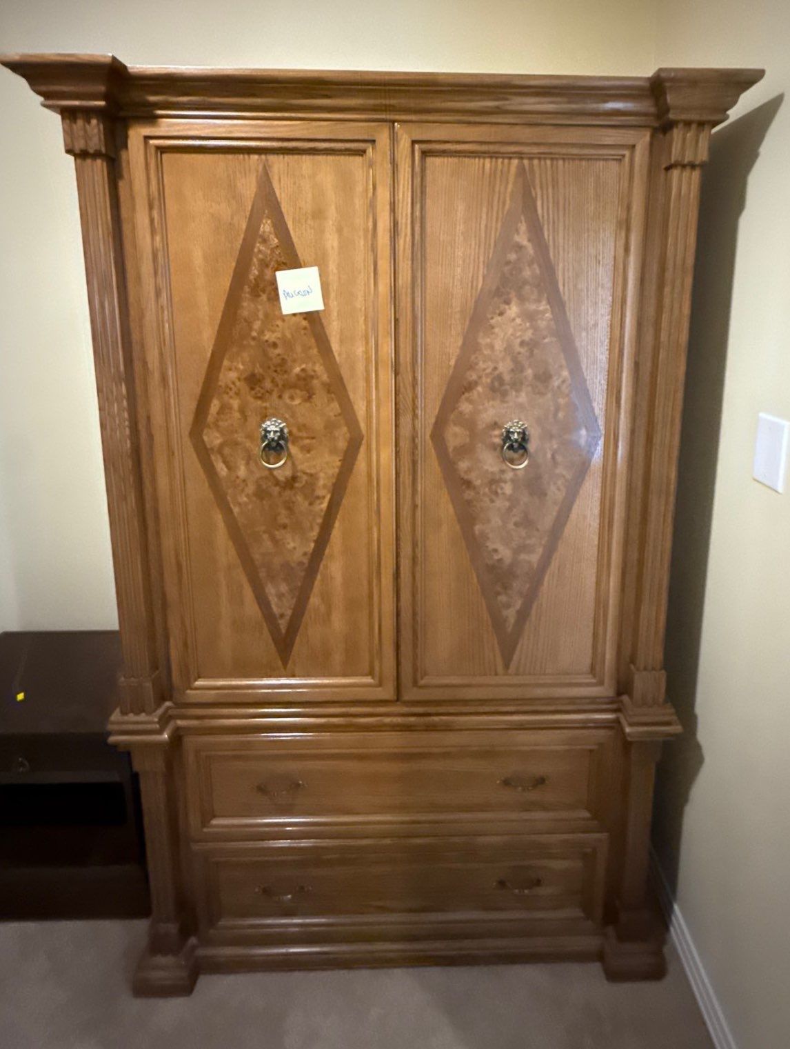 Gorgeous Wooden Closet w/ Brass Lion Accents - 47W, 22D, 73T