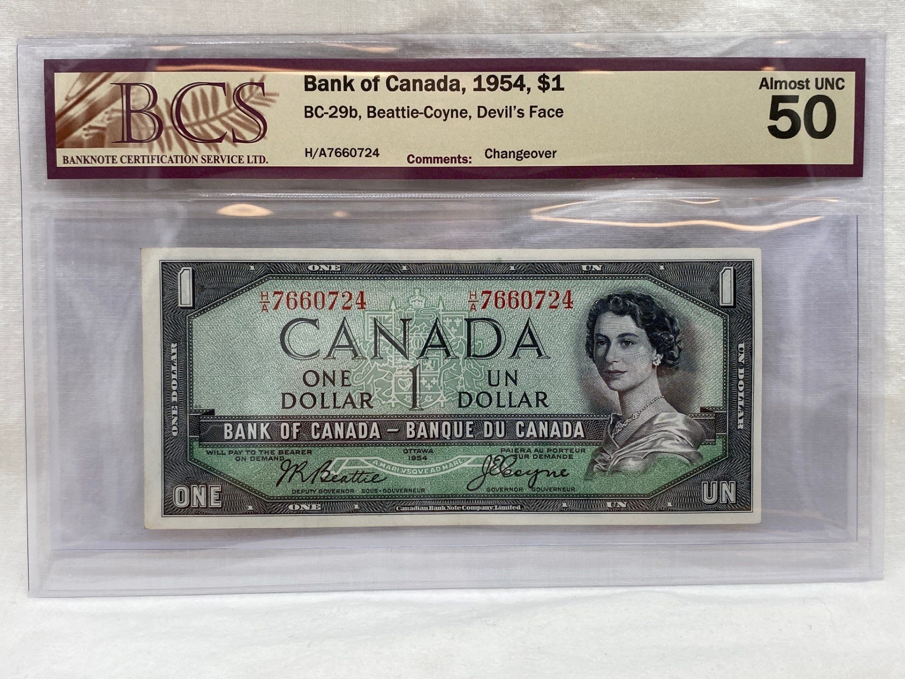 Graded Canadian 1954 Devil's Face $1 Almost UNC Prefix: H/A
