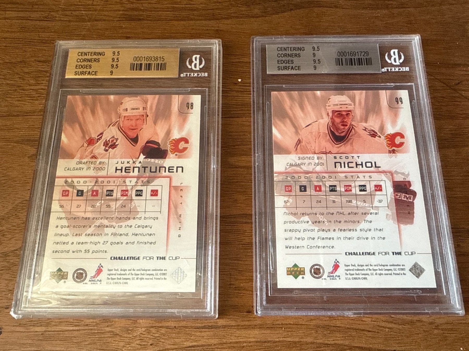 Graded Hockey Rookie Cards - Scott Nichol (Grade 9) w/ Jukka Hentunen (Grade 9.5)