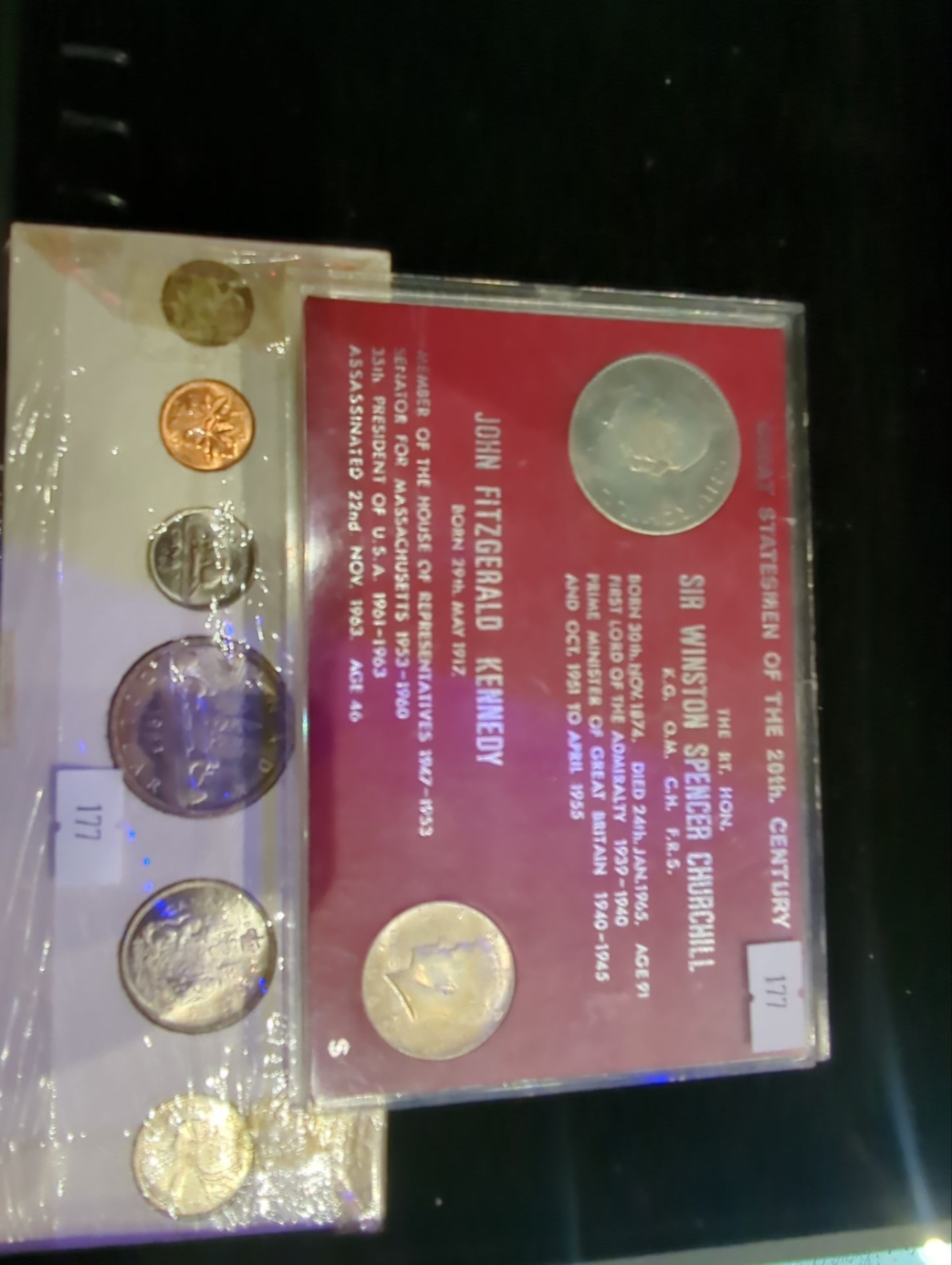 Great Statesmen of the 20th Century Including 1965 UK Sir Winston Churchill Nickel-Copper Crown and 1965 USA JFK Silver 0.40 Half Dollar 11.5 g, RCM 1963 Canadian Triple Silver 0.80 Coin Proof Set 40.82g