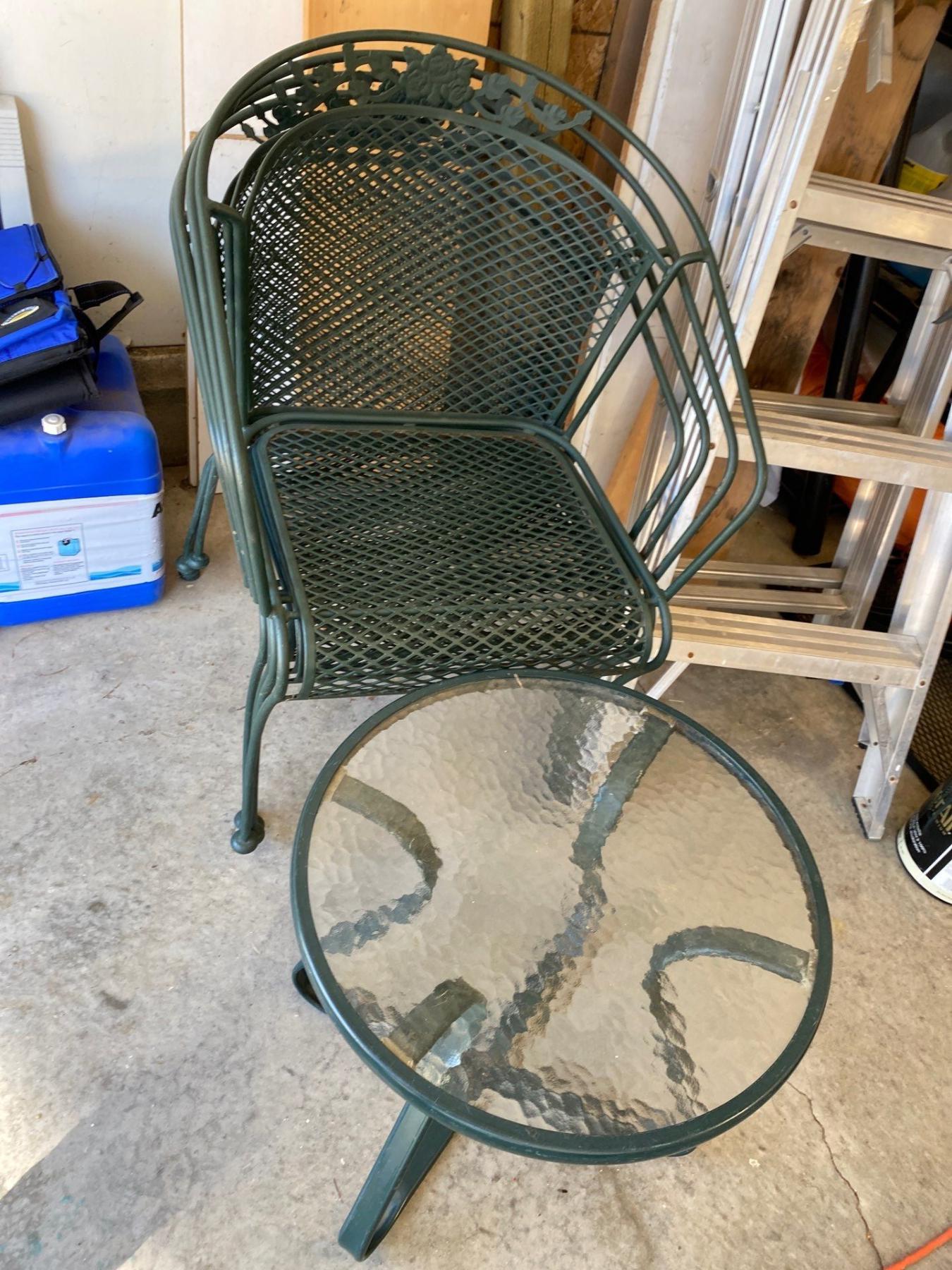 Green Metal Lawn Chairs With Side Table Glass Top & Garden Carpets