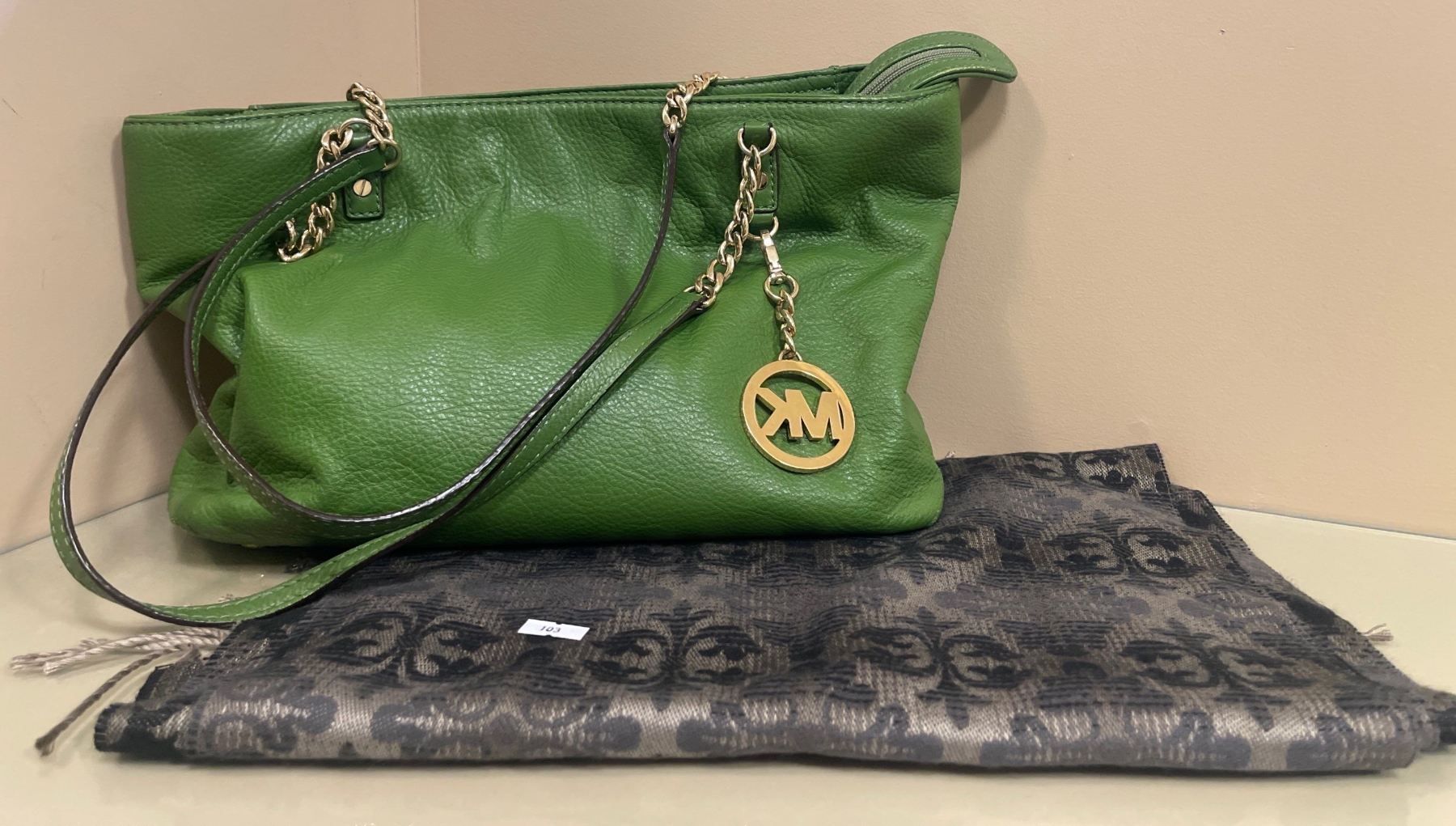 Green Micheal Kors Hand Bag/ Purse & Super Soft Scarf