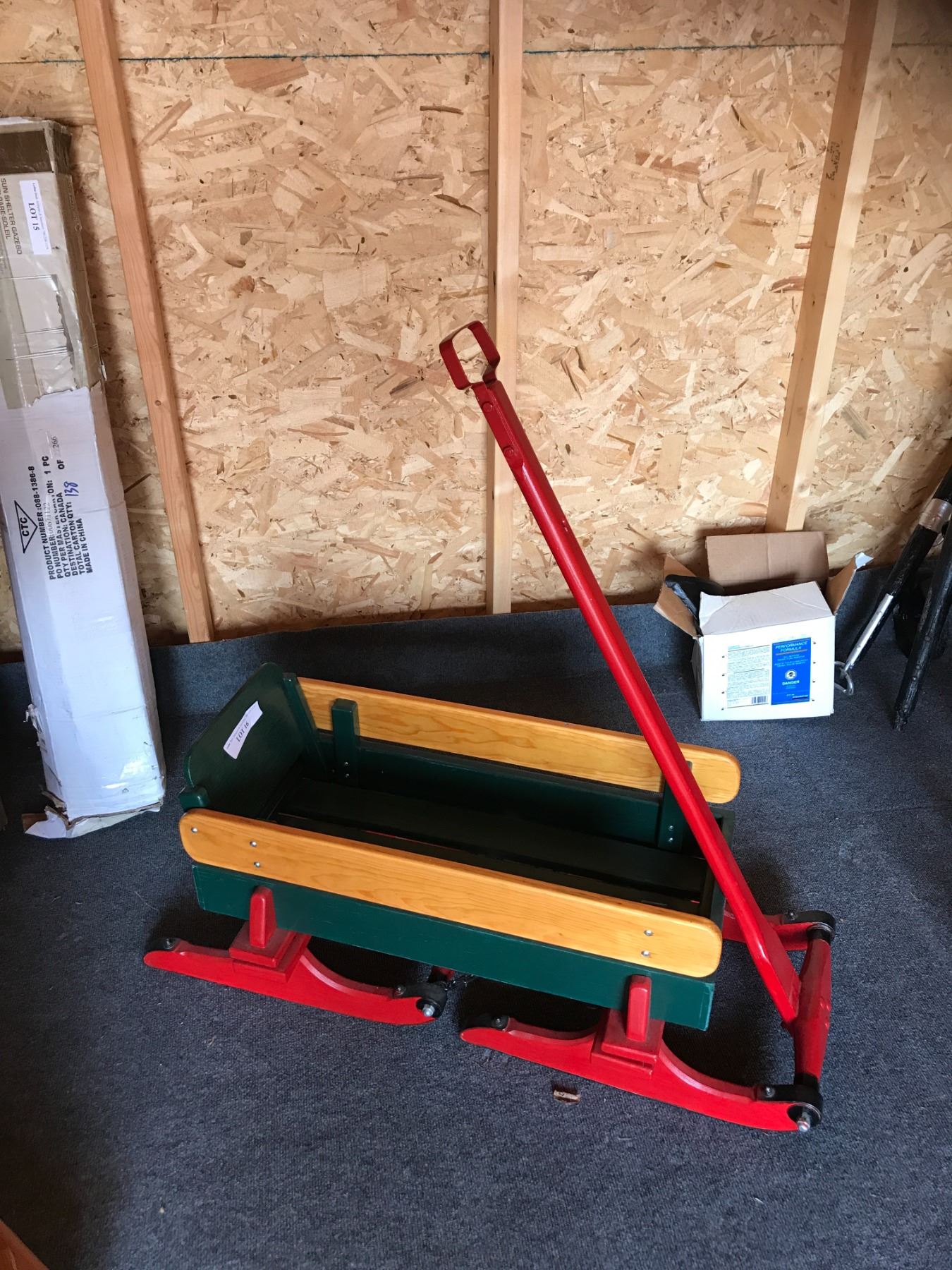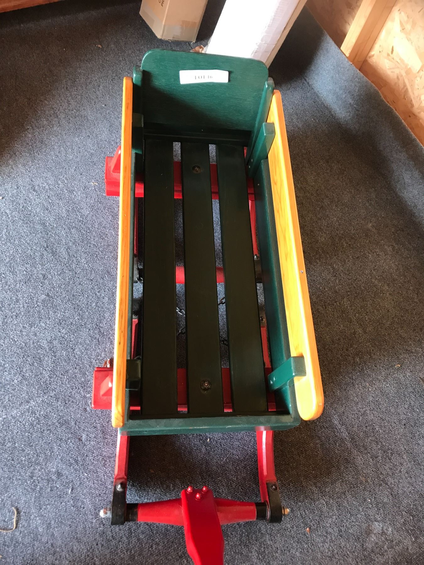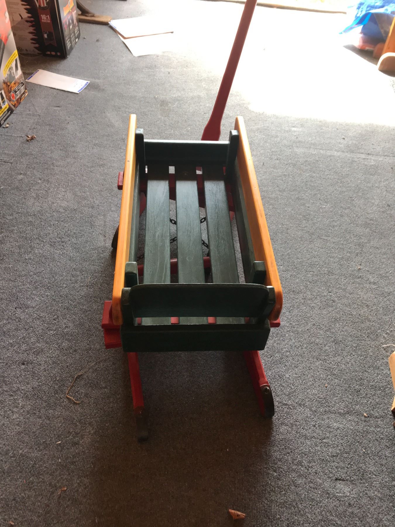 Green, Yellow & Red Wood & Metal Sleigh