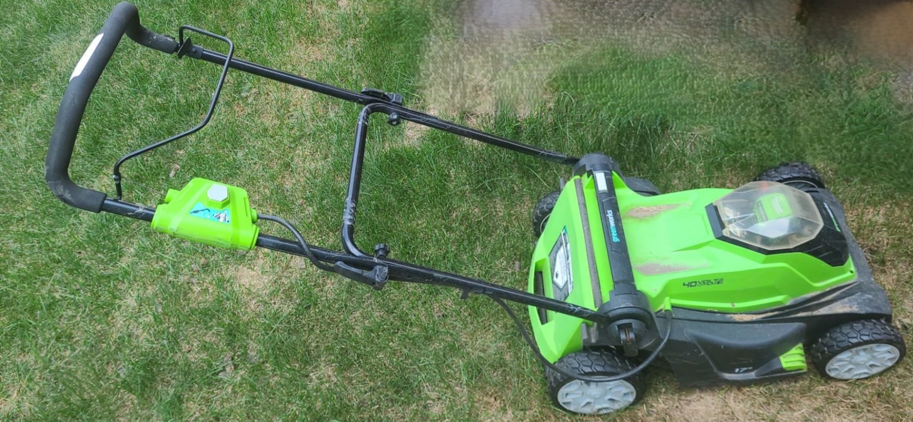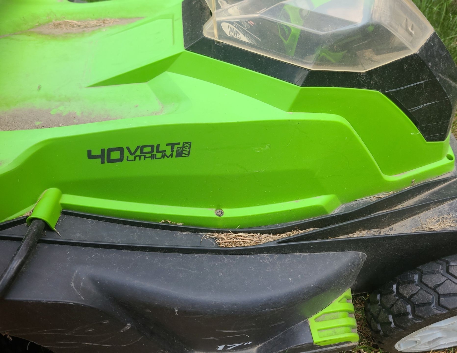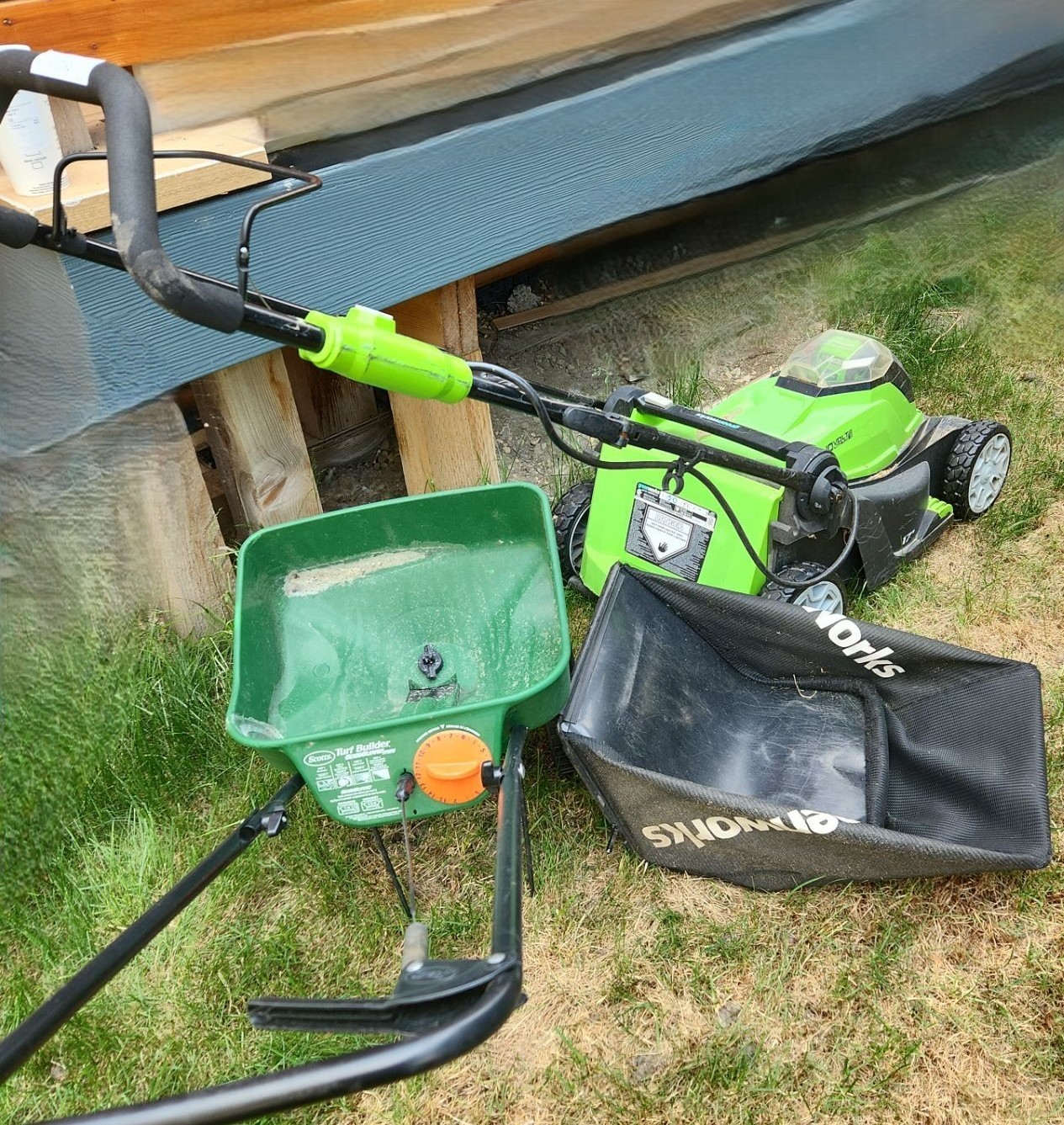 Greenworks Rechargeable Mower Model 2506402CT (60-1758)/ Charger Included and Scott's Edgeguard Fertilizer Spreader