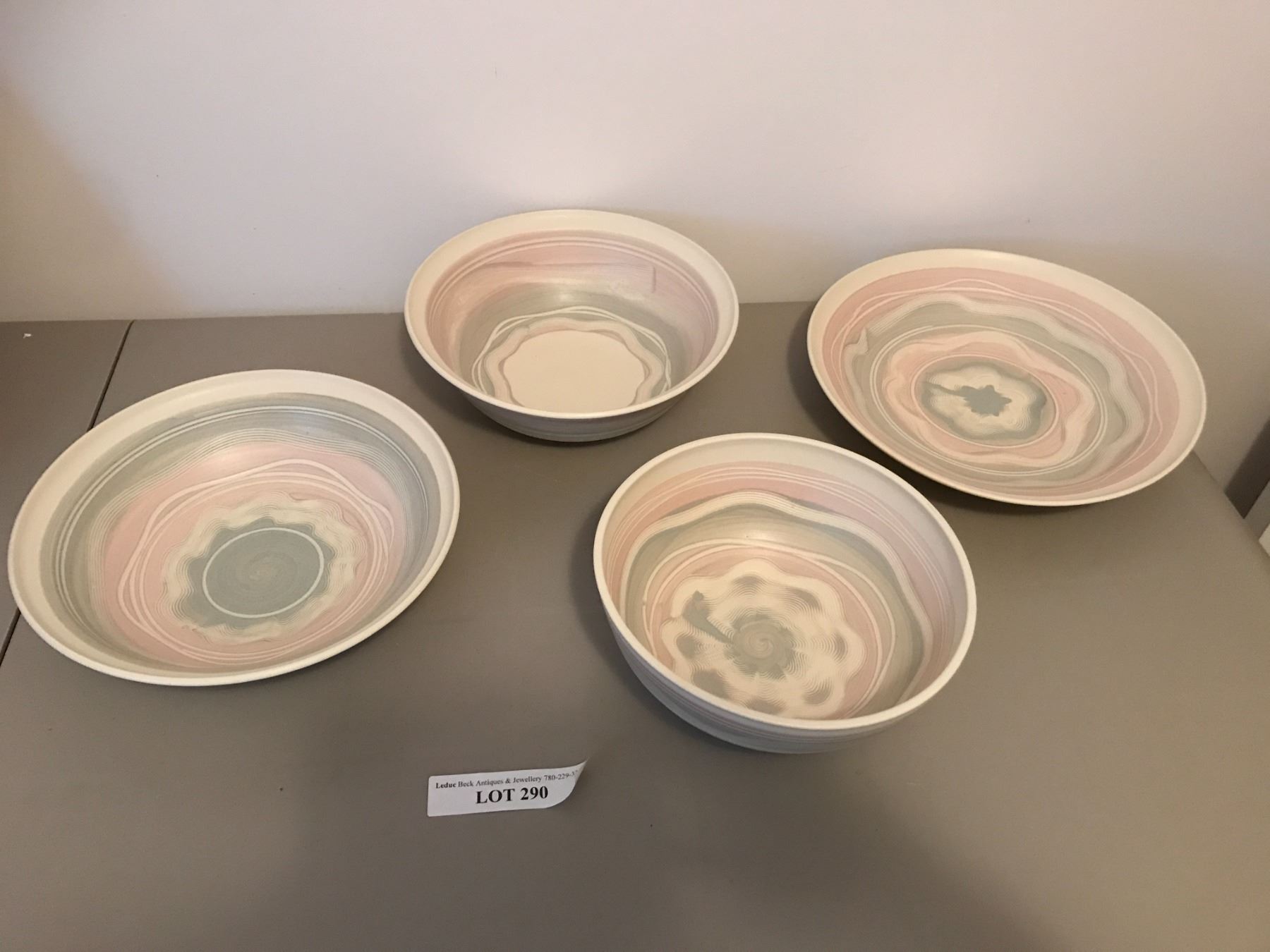 Grey Pink & Ivory Pottery Bowls, Floral Welcome Blade, 2 Weed Bags, Lg Beige Vase & Pottery Bowl