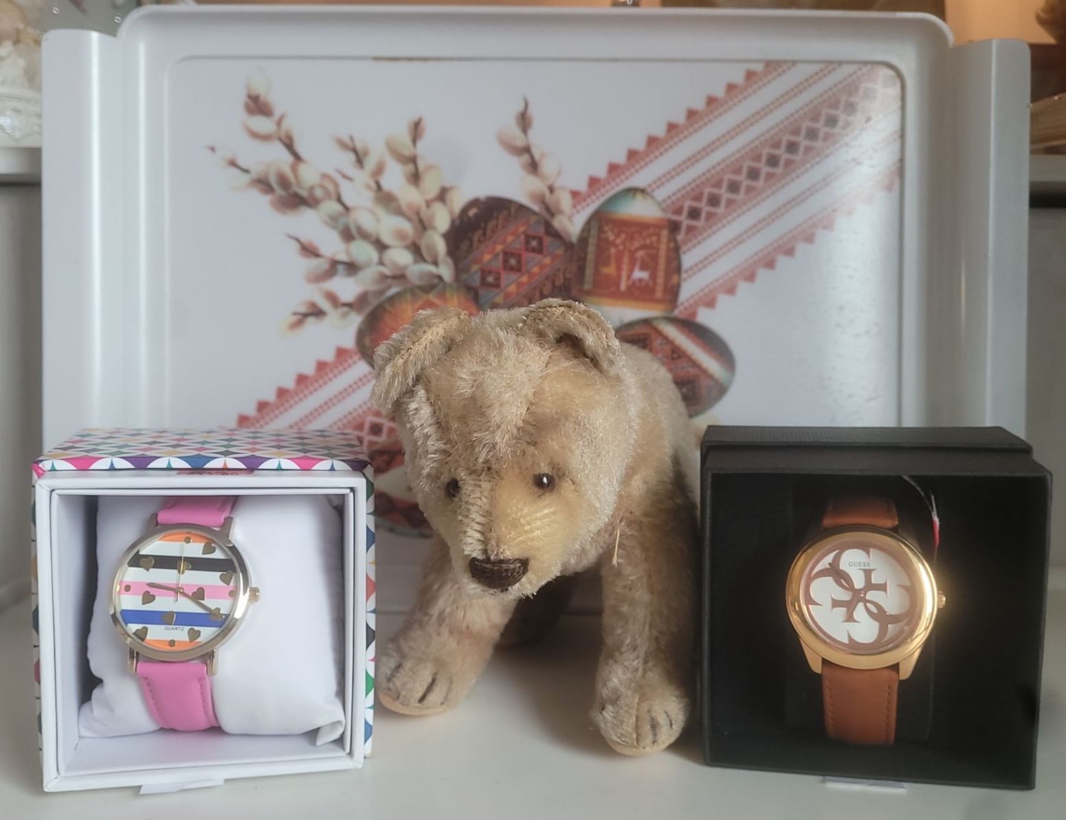 Guess and Fashion Woman's Watches with Steiff Teddy Bear & Tray