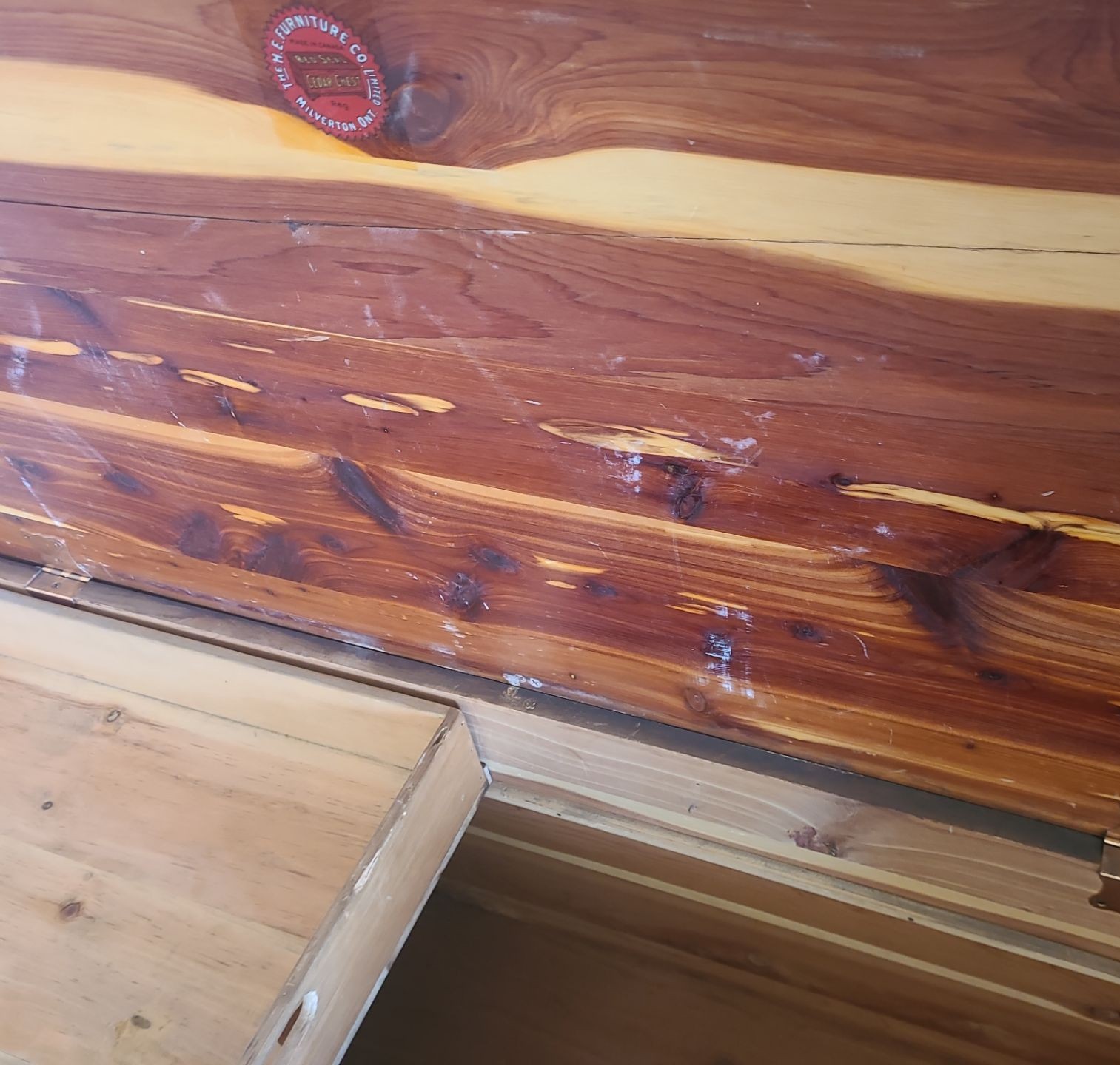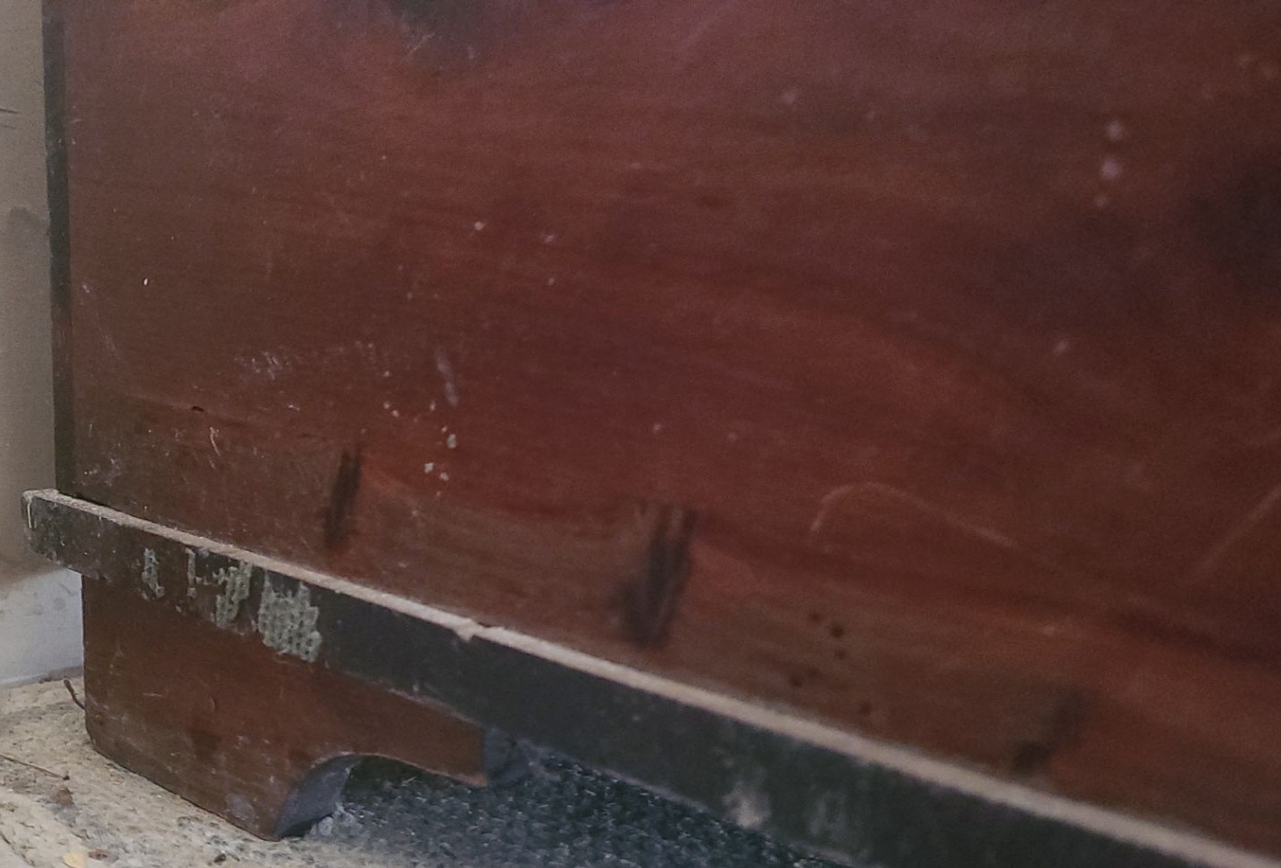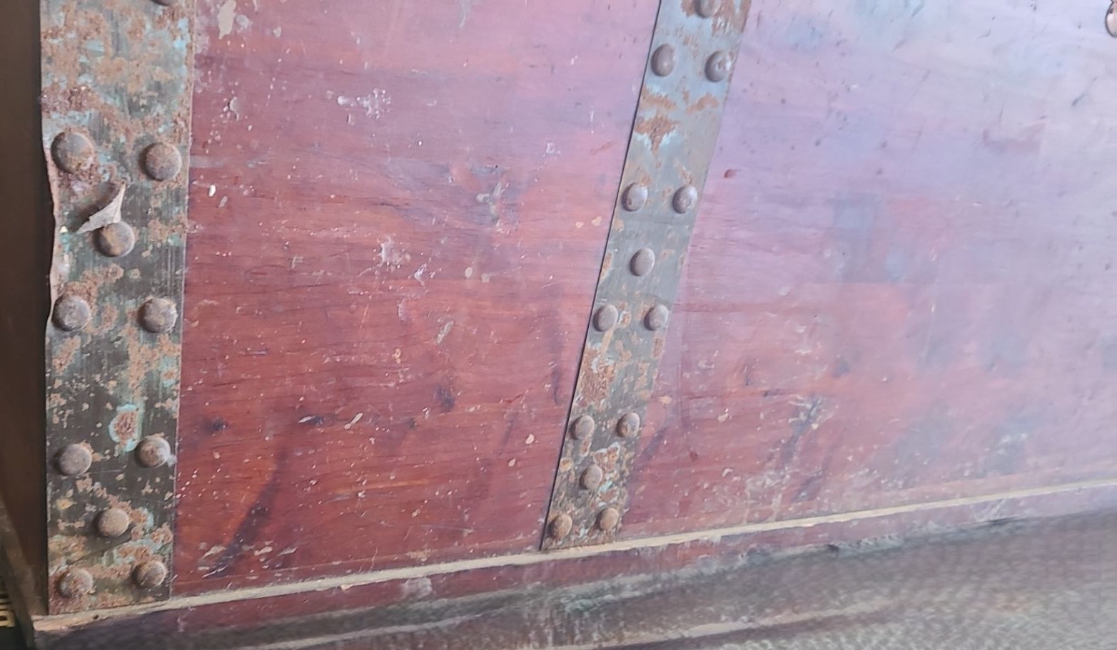 Table Has Gouged Corner, Trunk Weathered Exterior