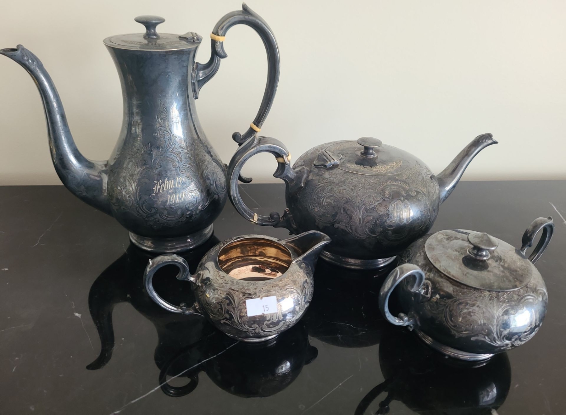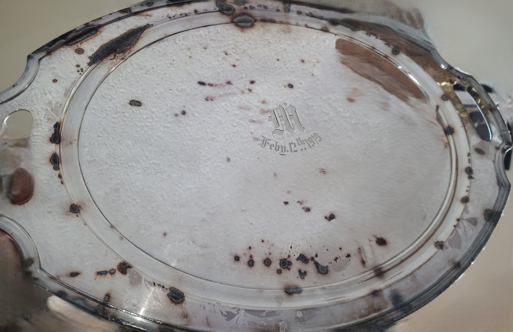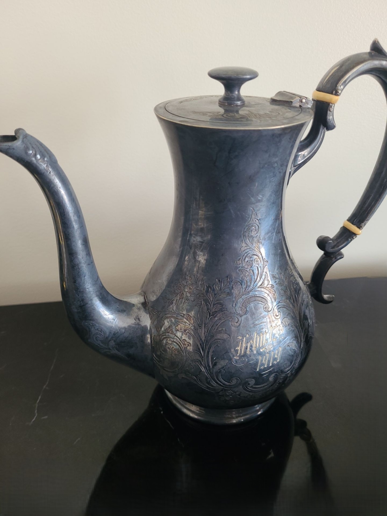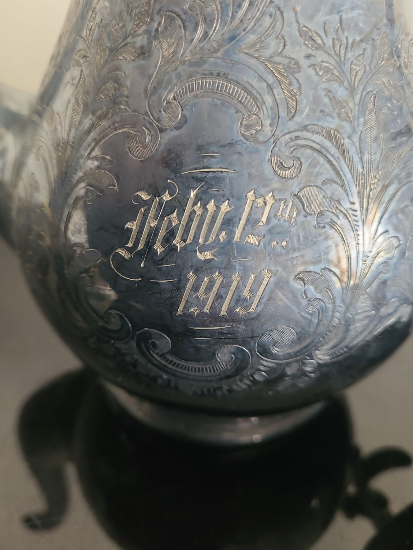 H & S England  May  Set- Engraved- Teapot 9 T, Tray 16.5 X 24 and More!