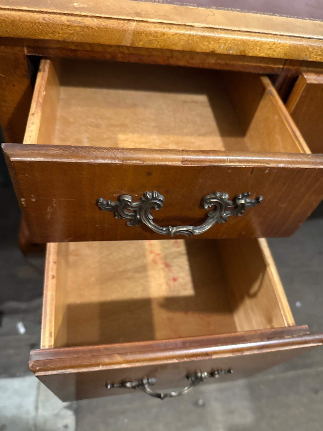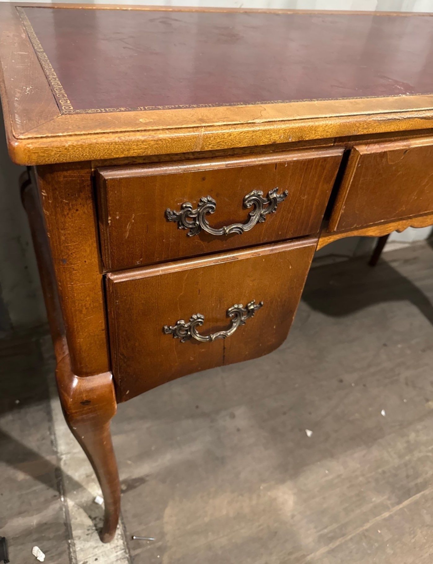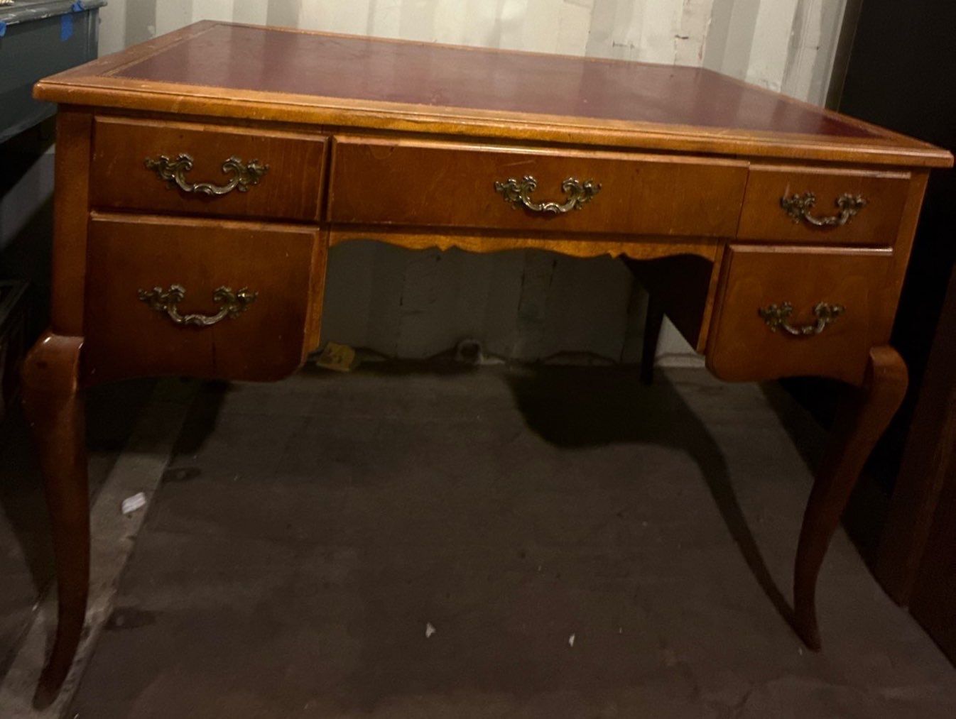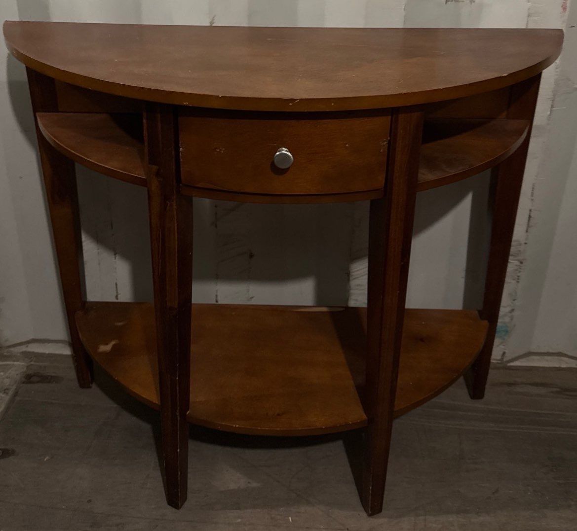 Half Moon Side Table (36W, 30T) & Lovely Vintage Wooden Desk (42W, 21D, 31T)