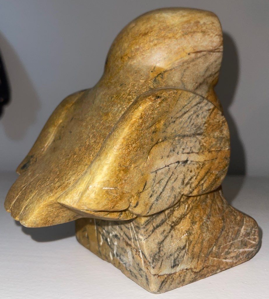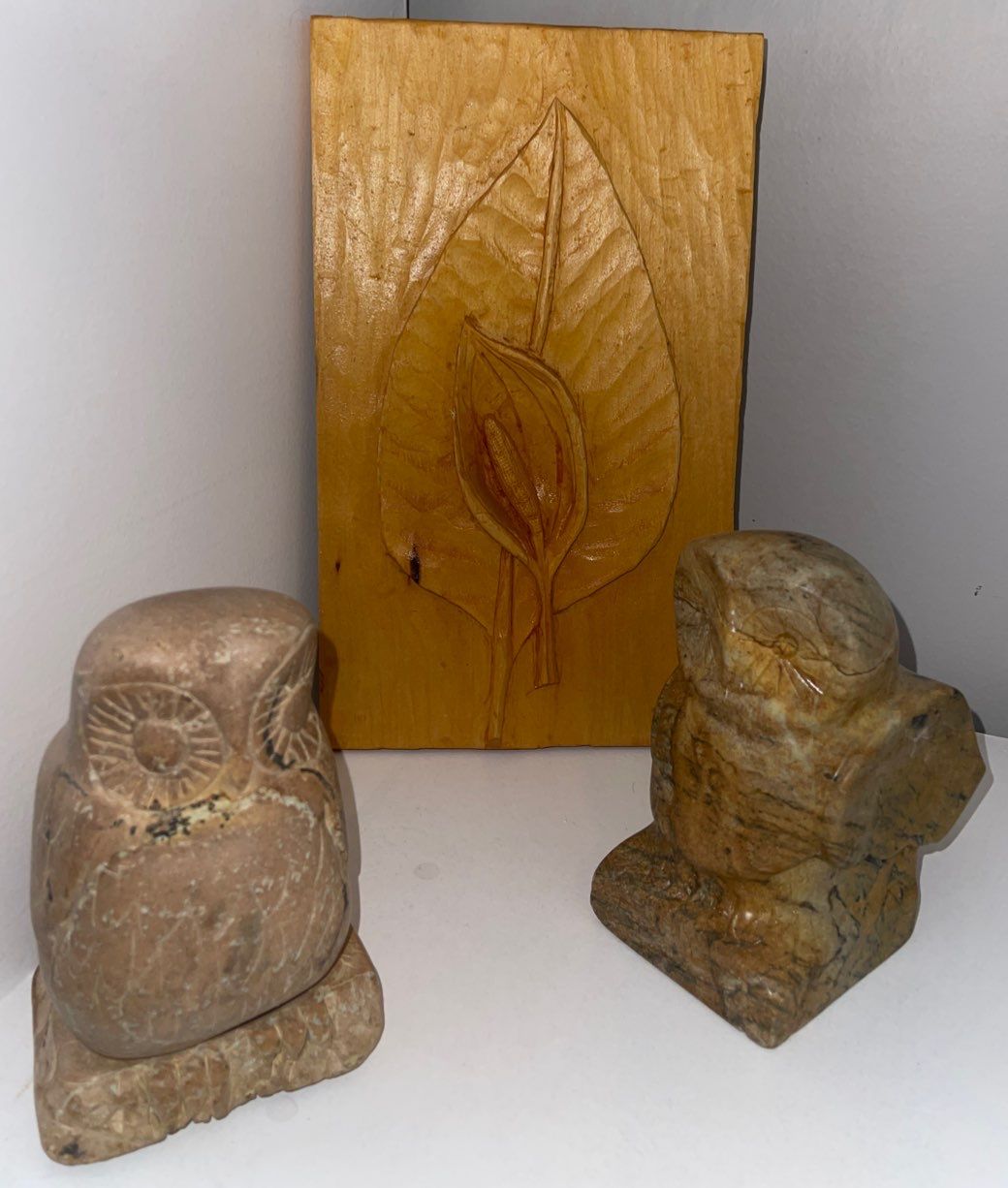 Hand Carved Canadian Wildlife Art - Stone Birds w/ Wooden Plaque 11T