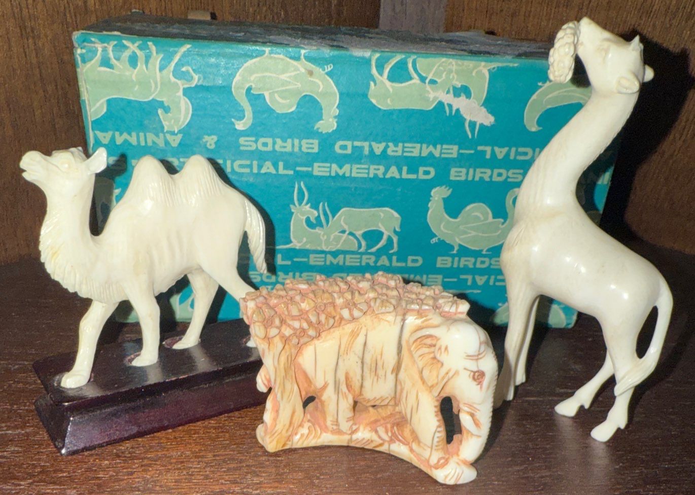 Hand Carved Ivory Camel Elephant & Giraffe Figures 3.5T