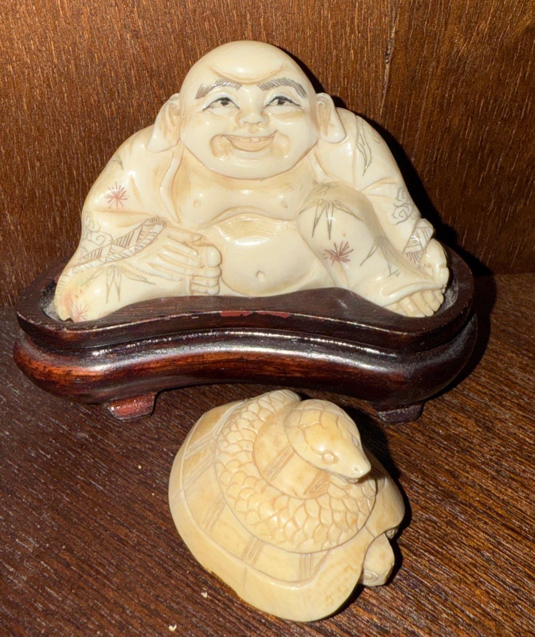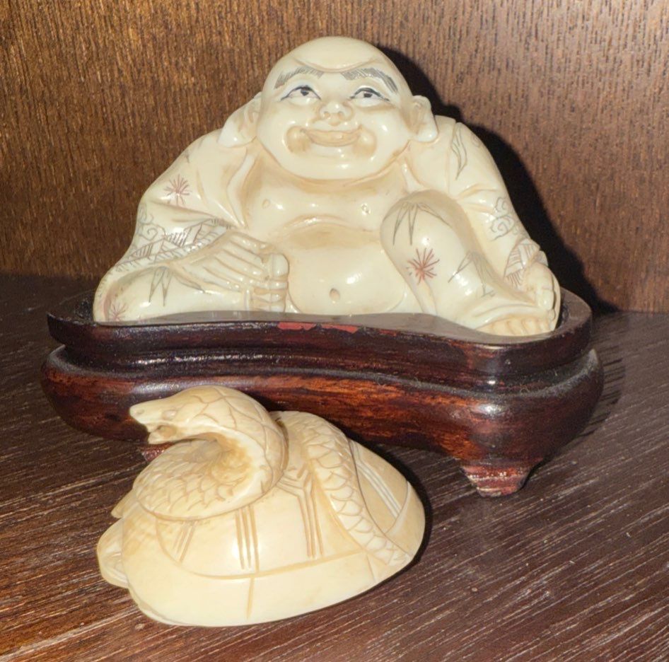 Hand Carved Ivory Happy Budda & Cobra Snake 3T