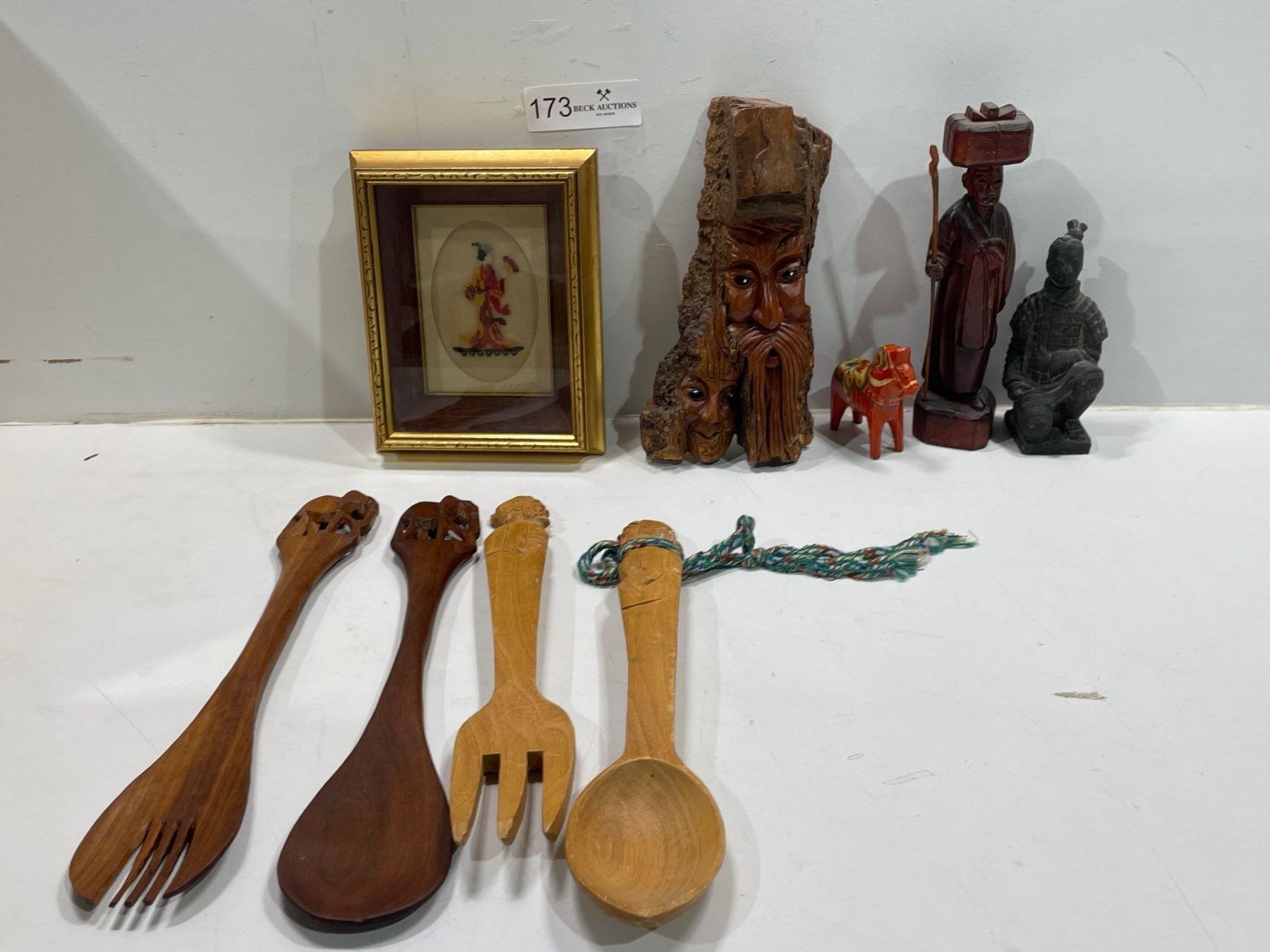 Hand Carved Salad Tool Sets (Africa,Quebec) Cultural Carved Artwork, And Weaved Asian Art