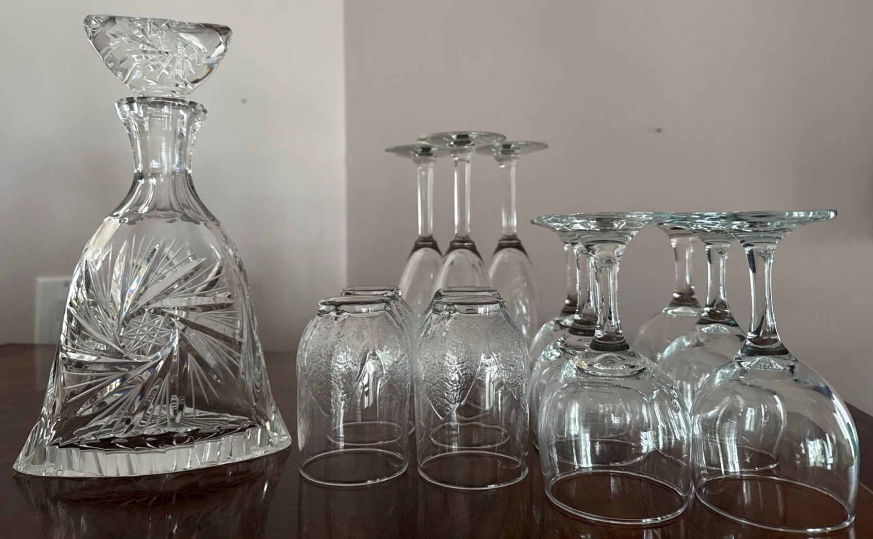 Hand Cut Stemware Collection & French Crystal Decanter w/ Stopper 11T
