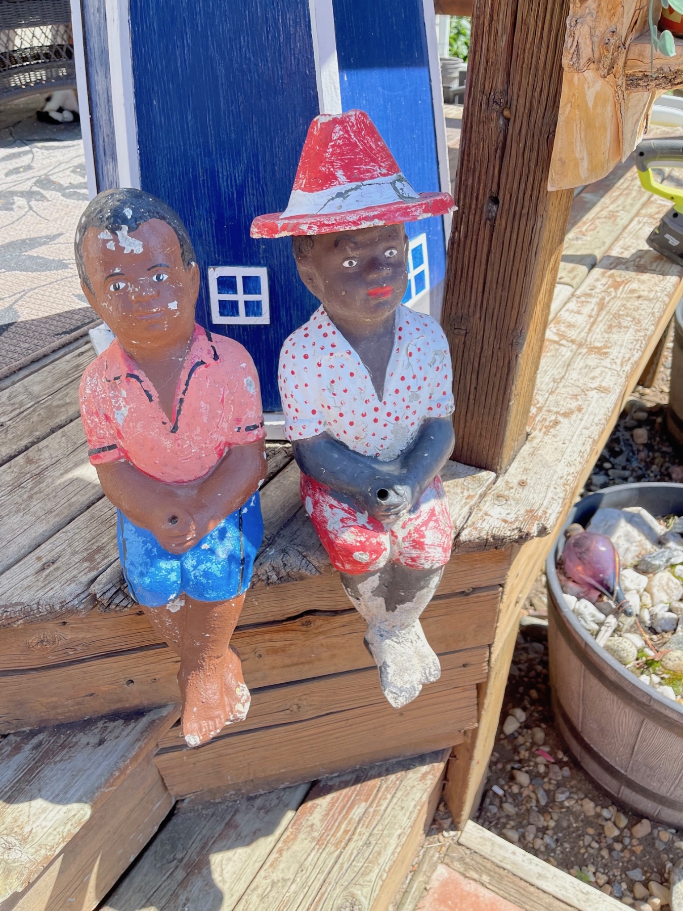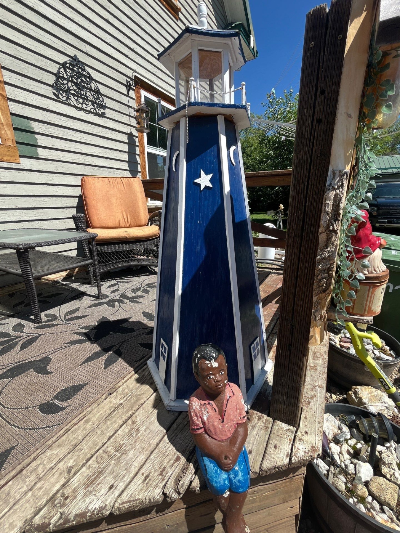Hand Made Light House With Working Light Along With A Pair of Folk Art Boys