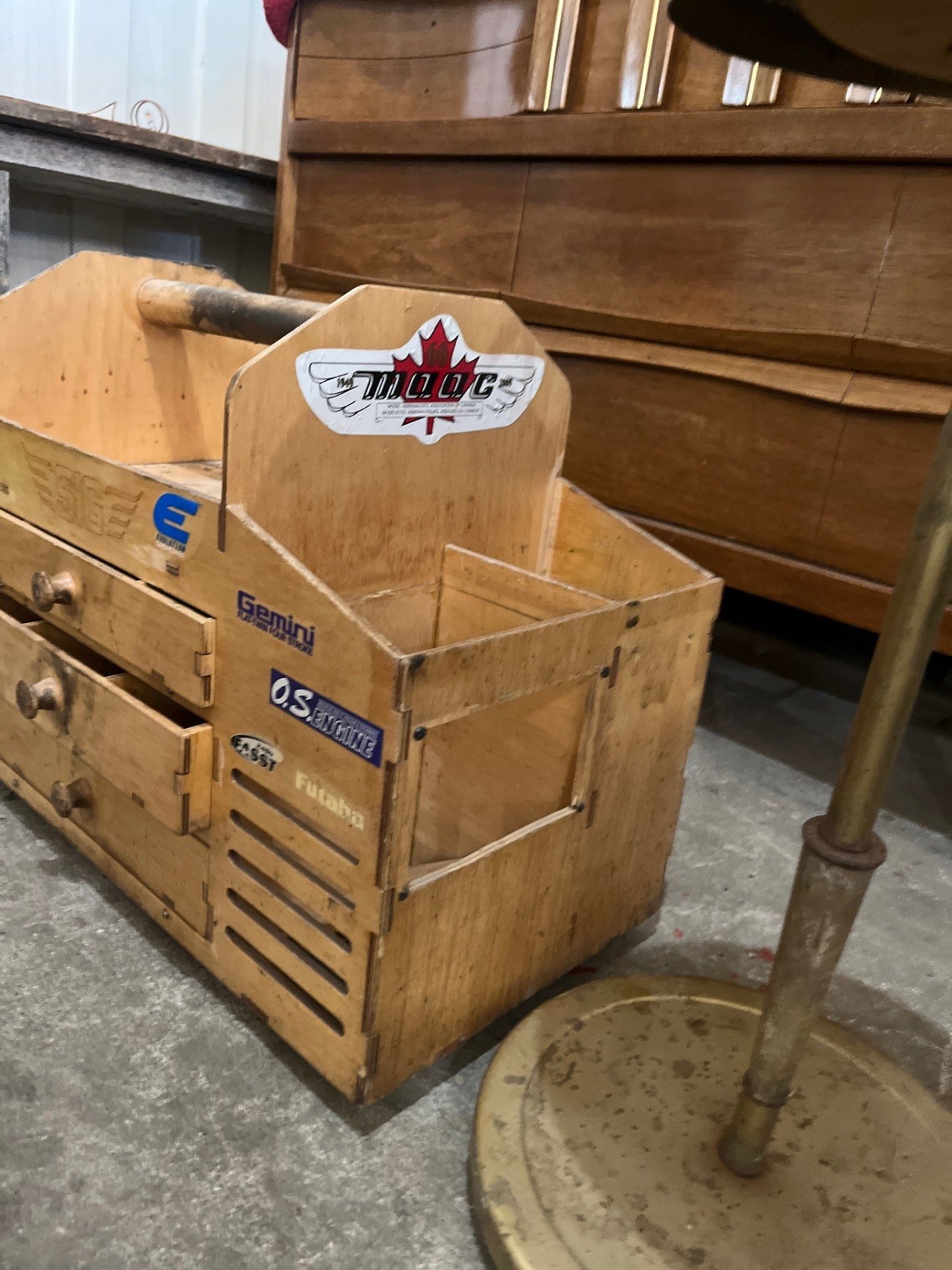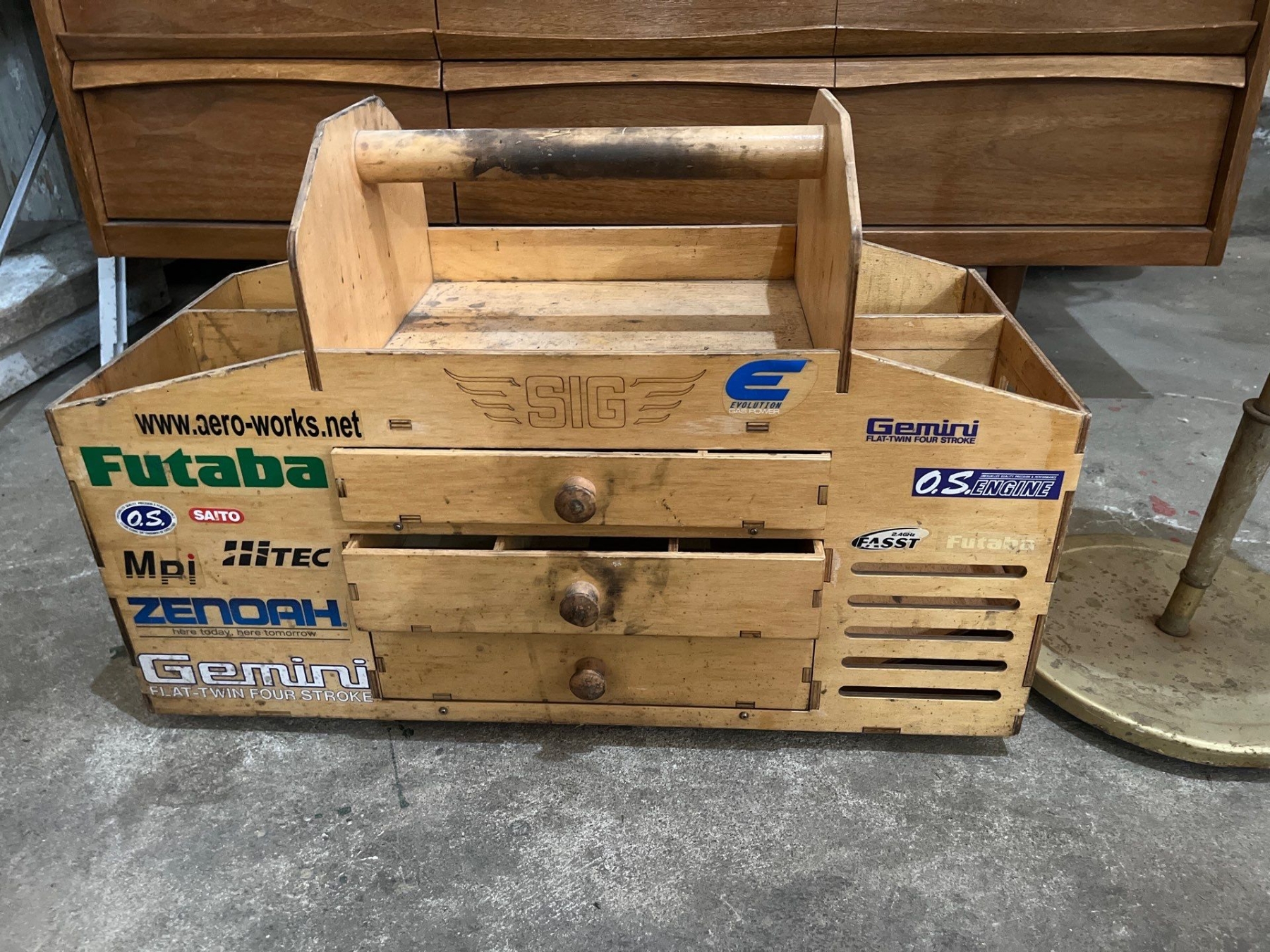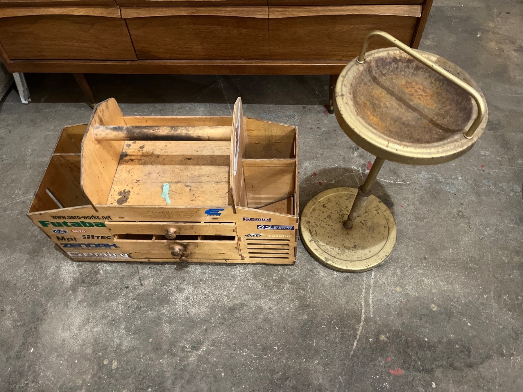 Hand Made Wood Tool Box With Vintage Brass Ashtray L25 H15 W11