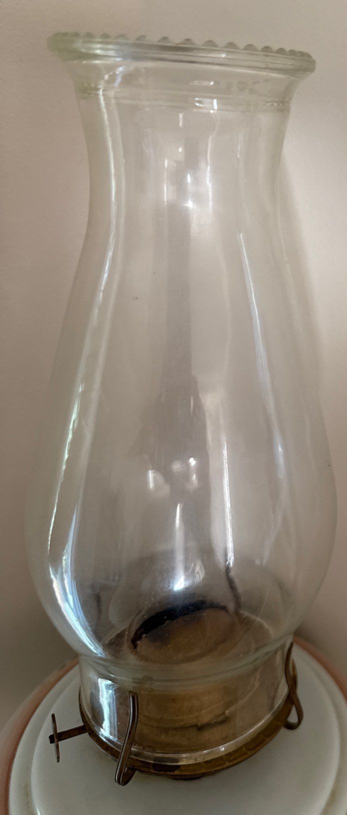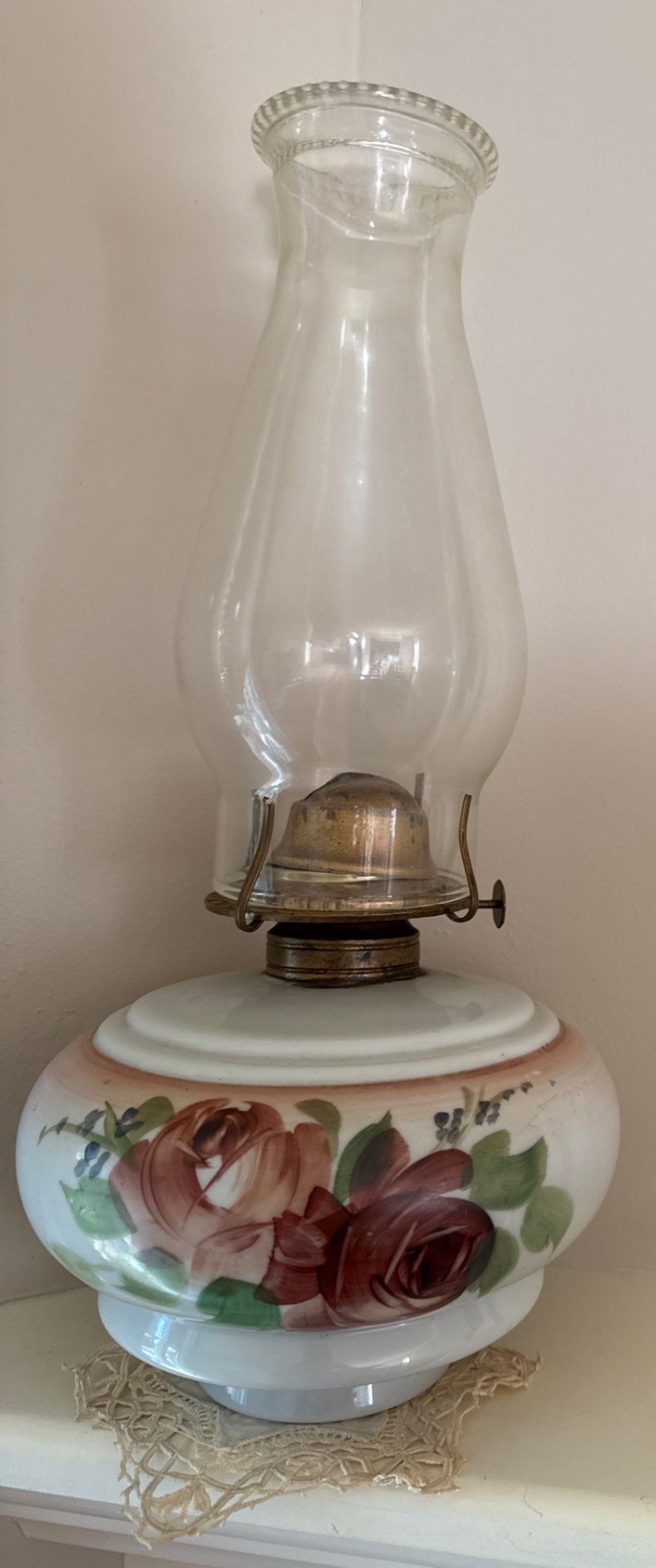 Hand Painted Antique Floral Kerosene/Oil Lamp On Milk Glass Base 14"tall