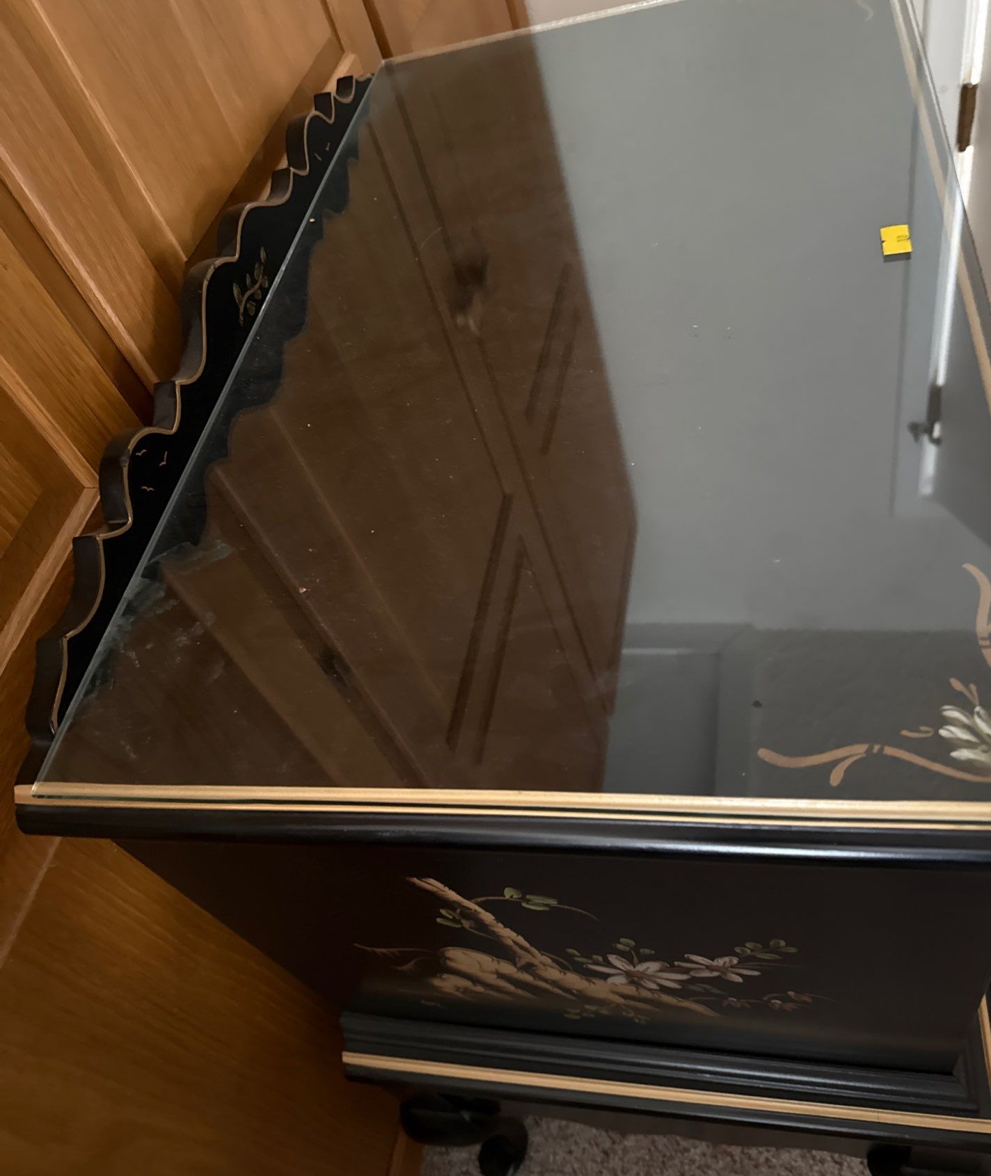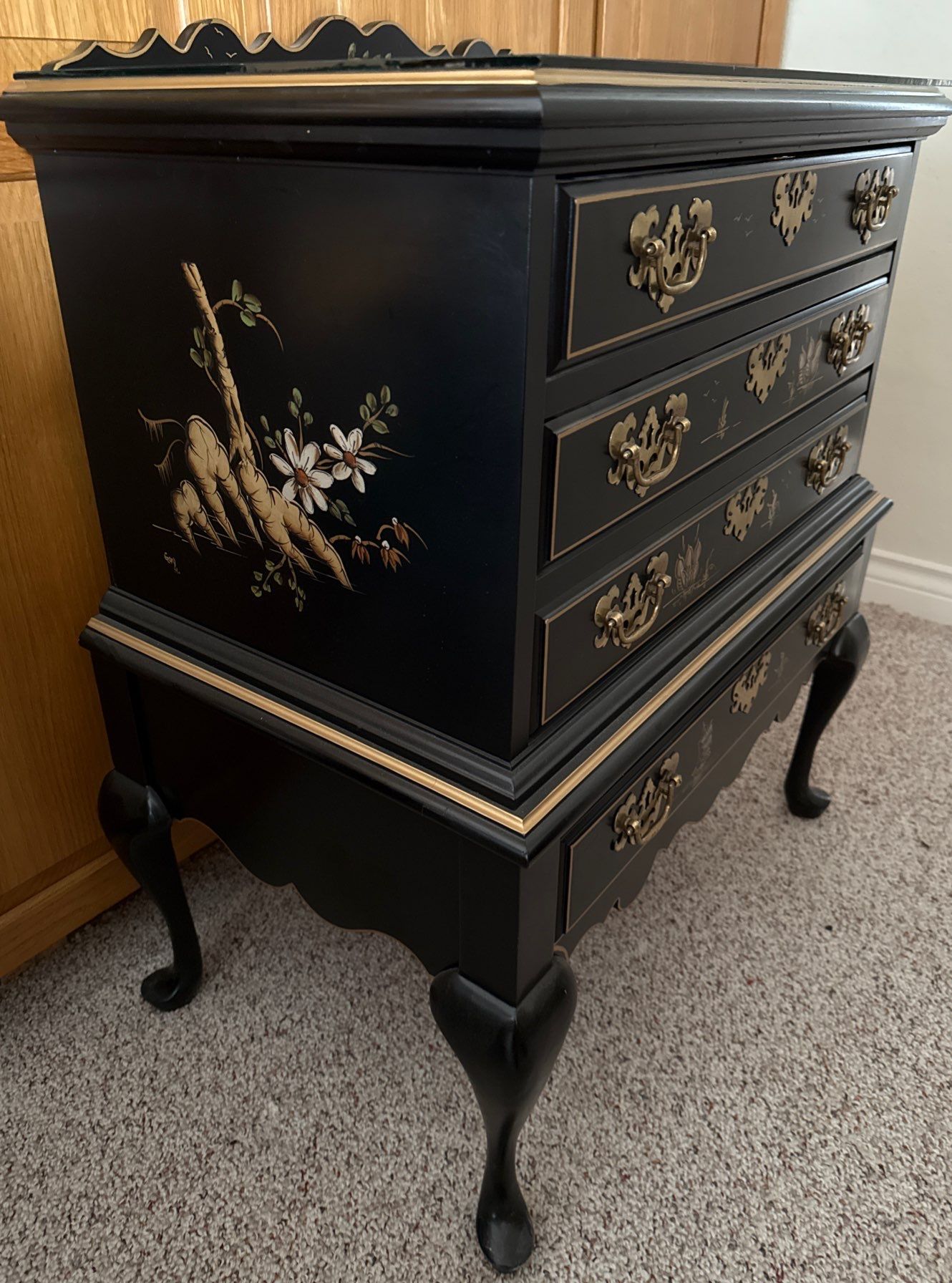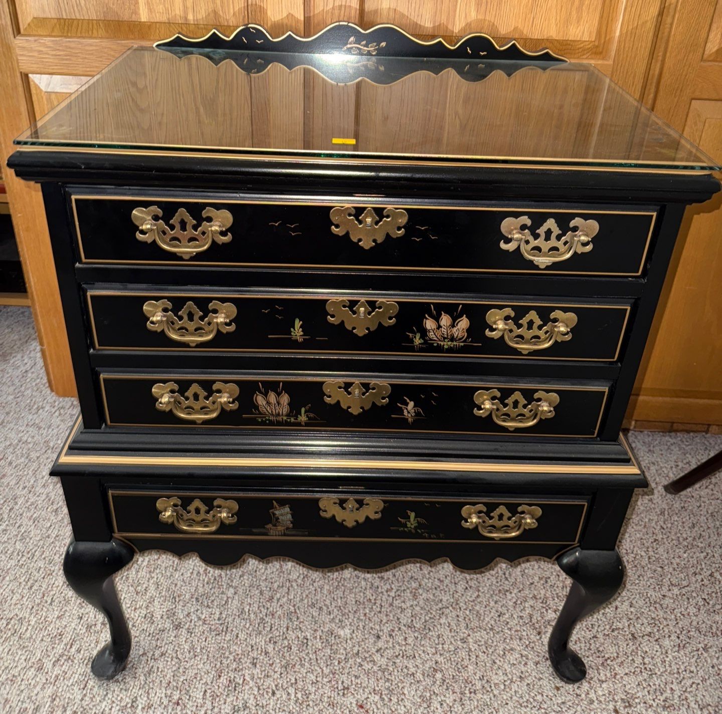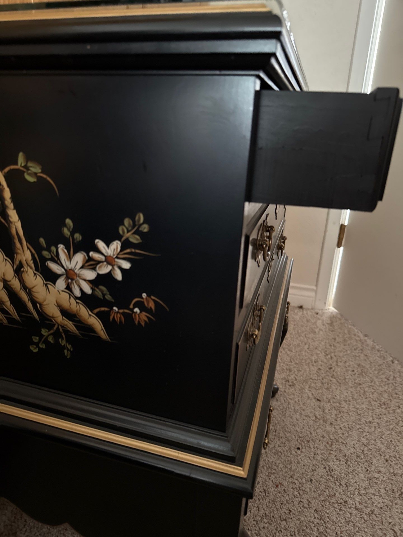 Hand Painted Black Lacquered Chinoiserie Secretariat 25x16x32