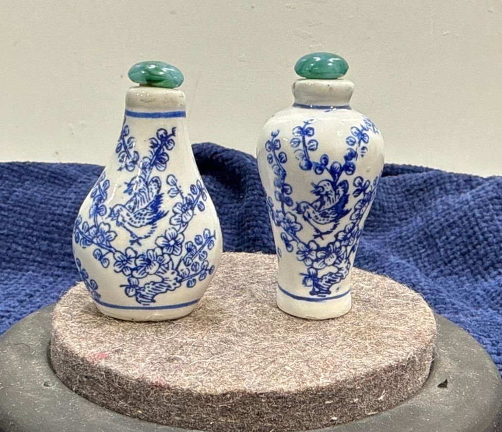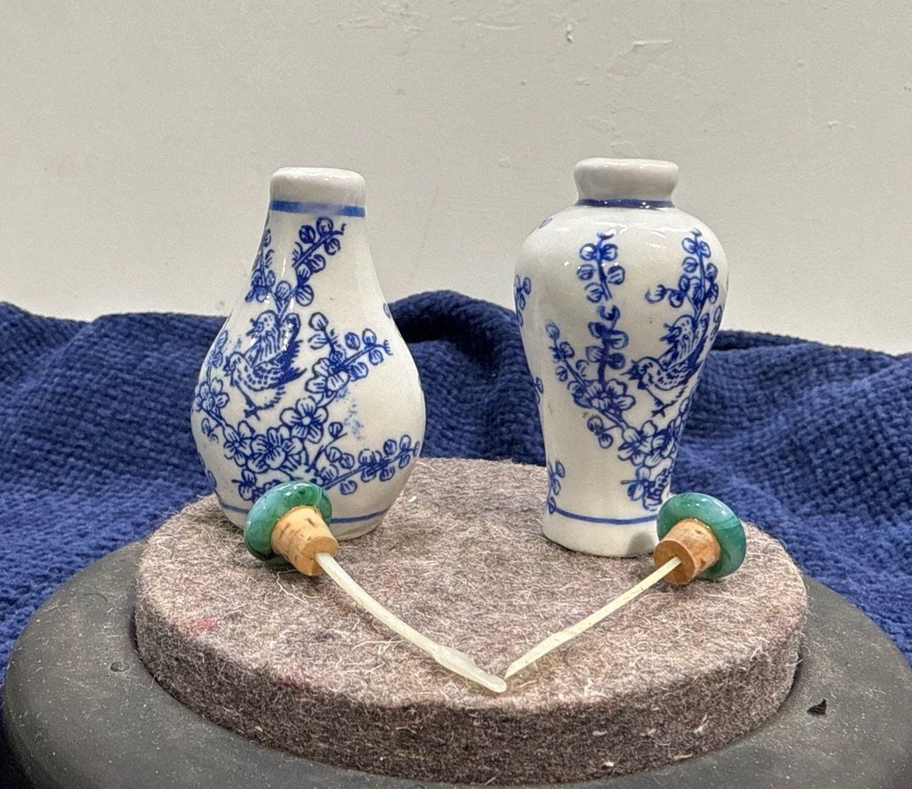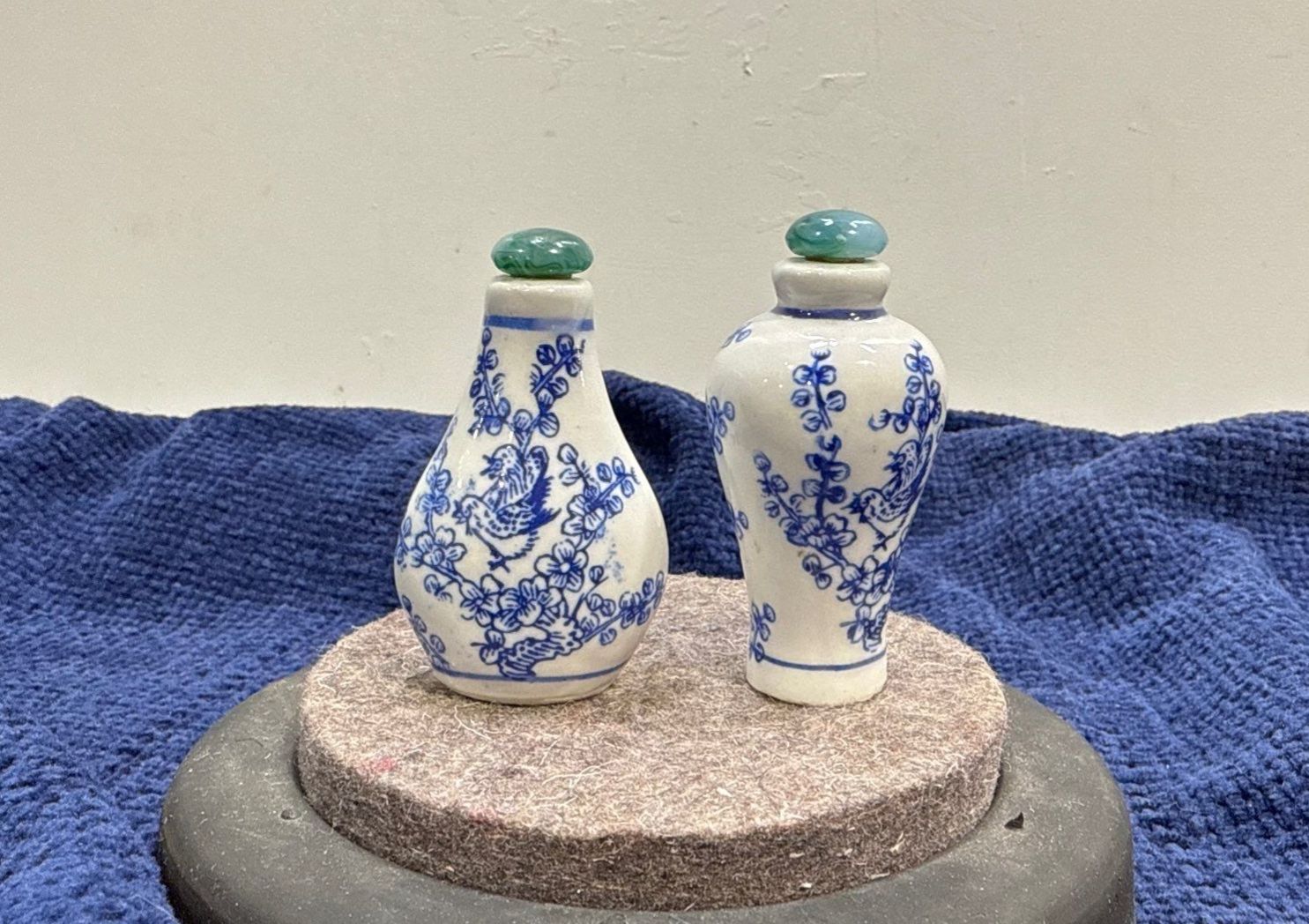 Hand Painted Blue & White Floral Snuff Bottles with Spoons  2.5H