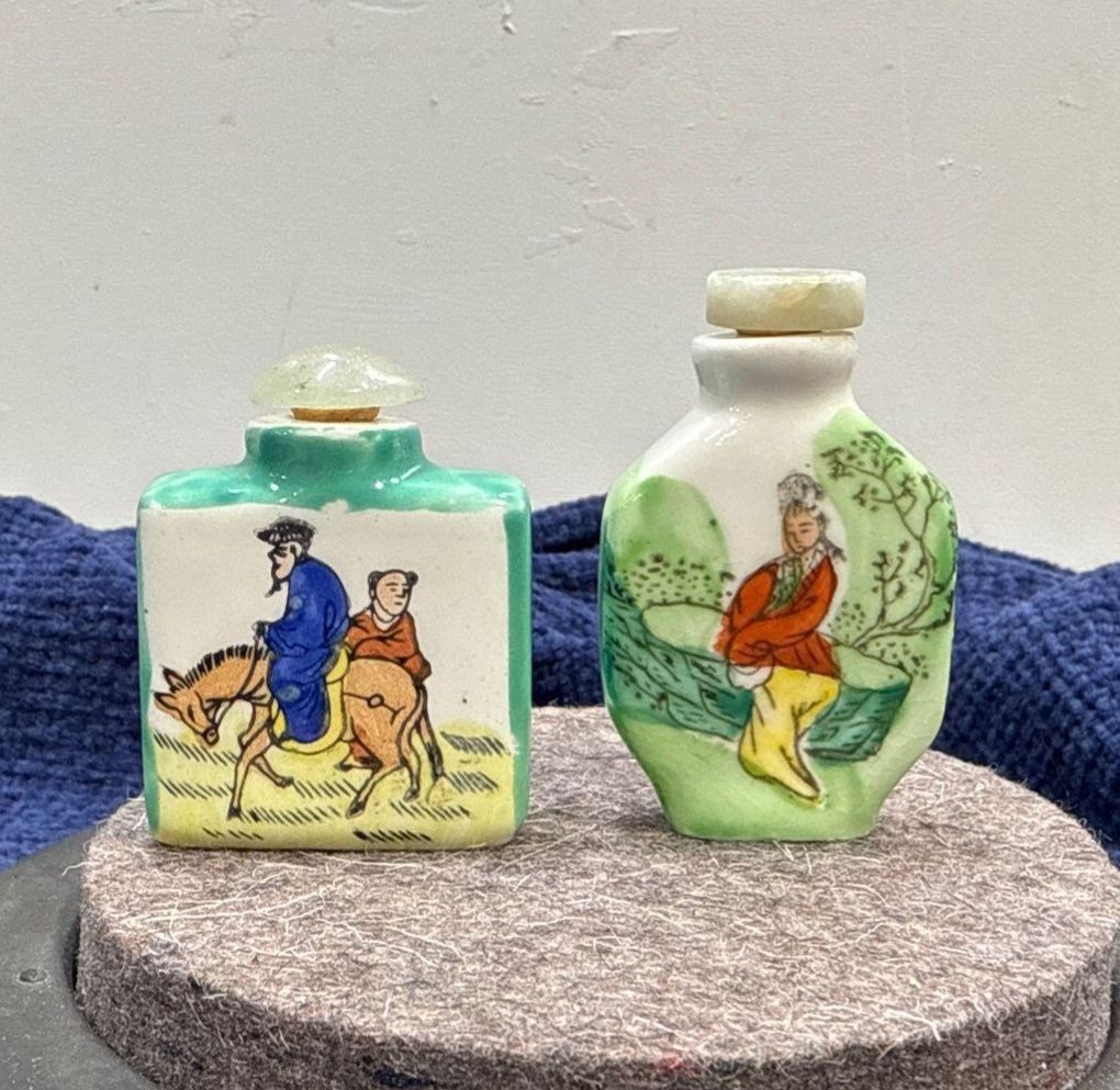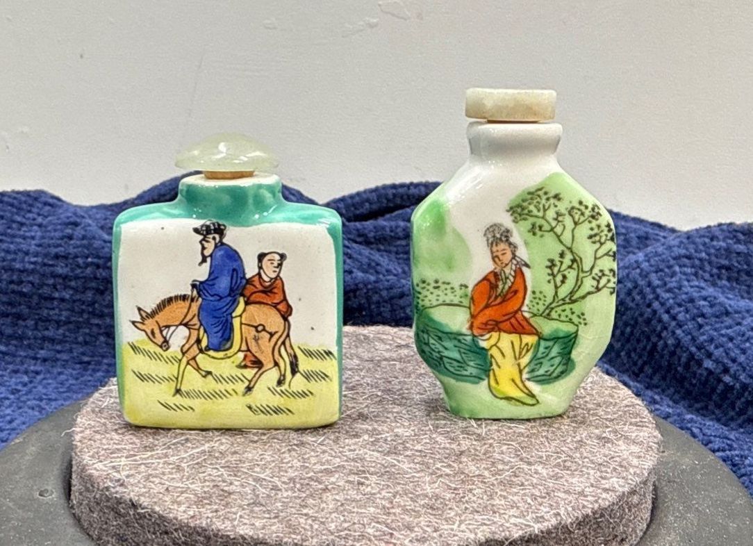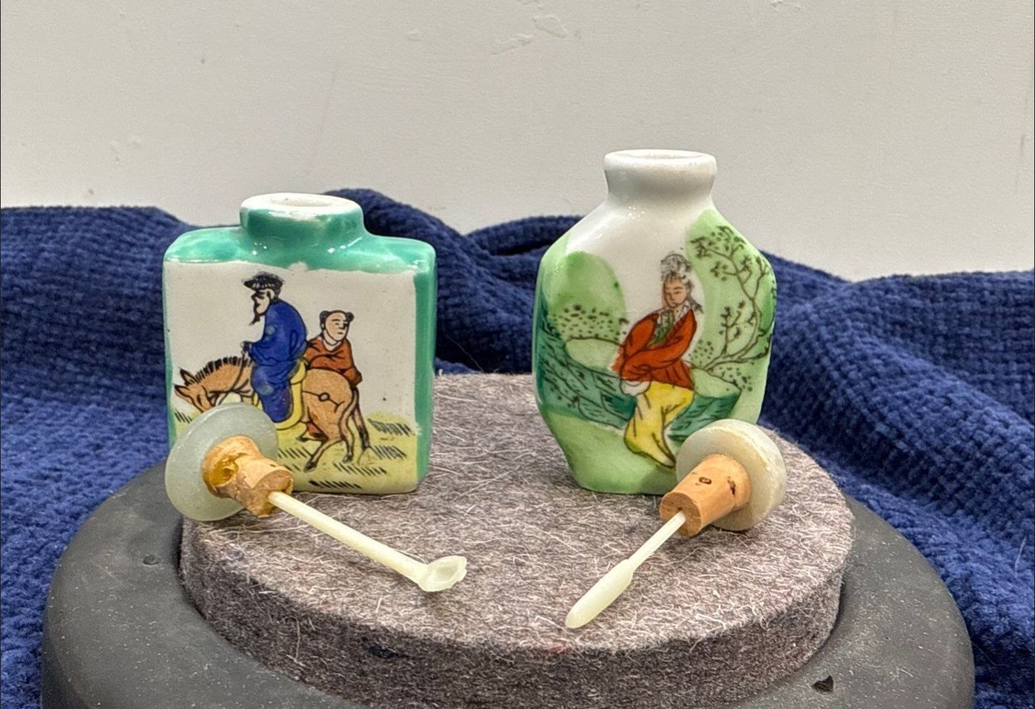 Hand Painted Ceramic Snuff Bottles with Spoons 2H