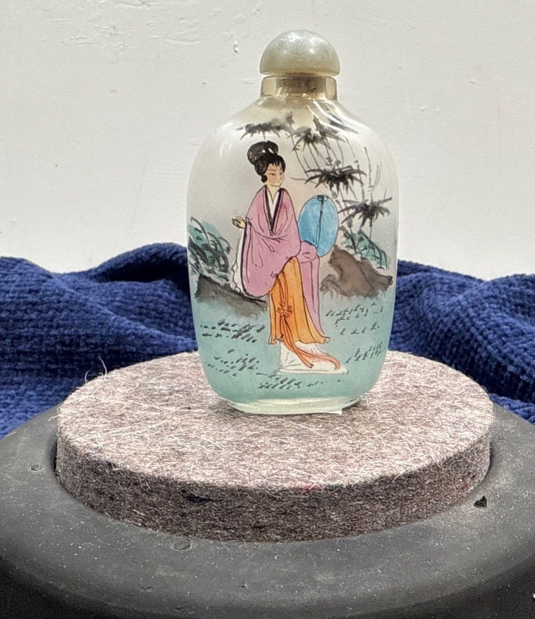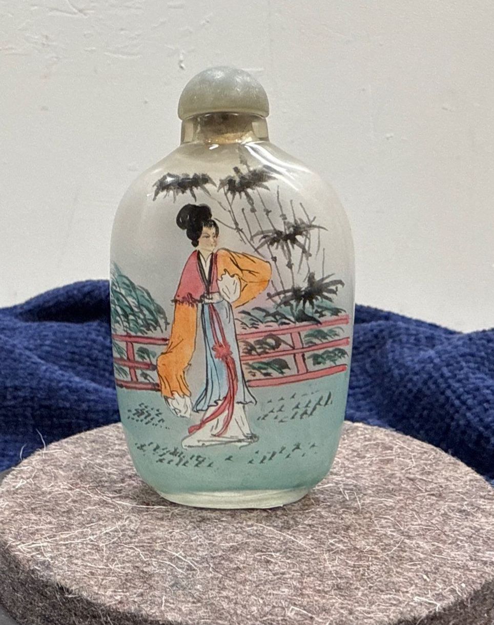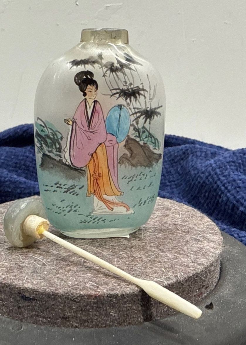 Hand Painted Glass Snuff Bottle with Spoon 2.5H