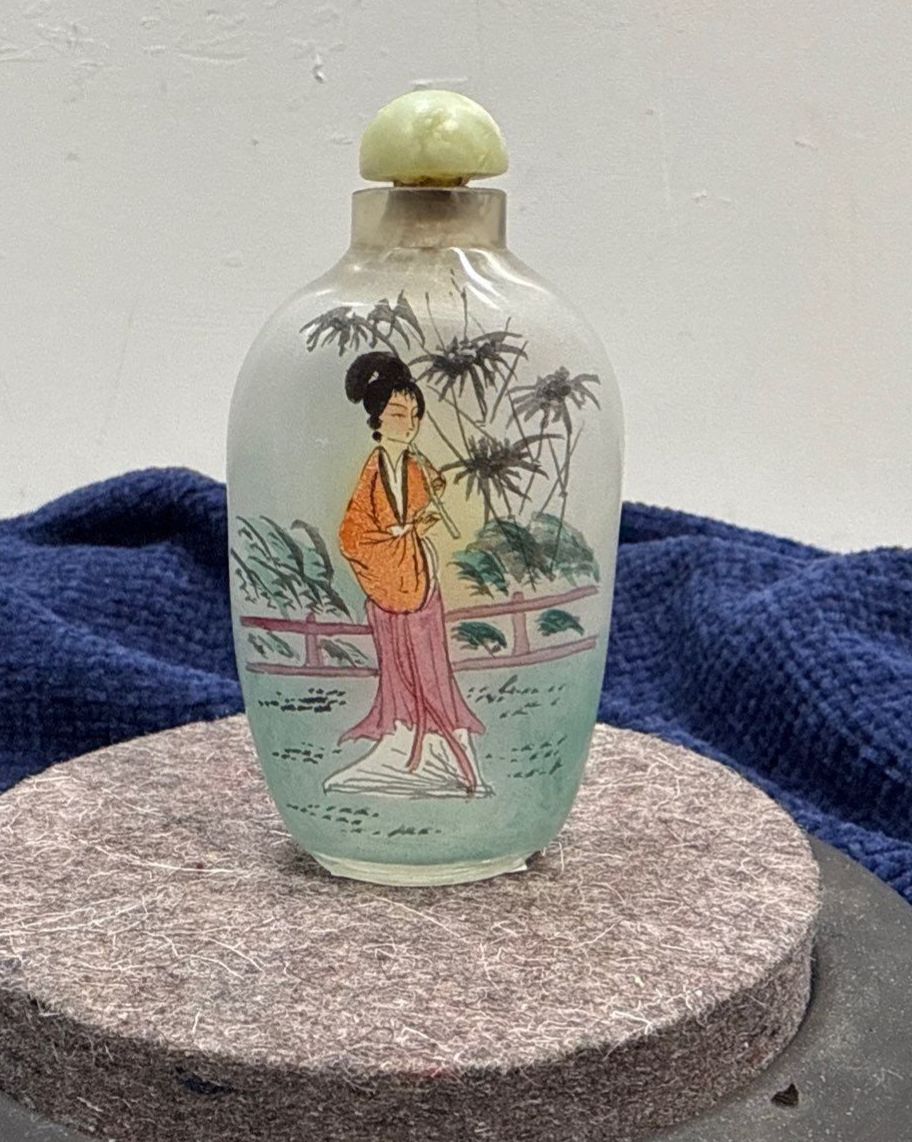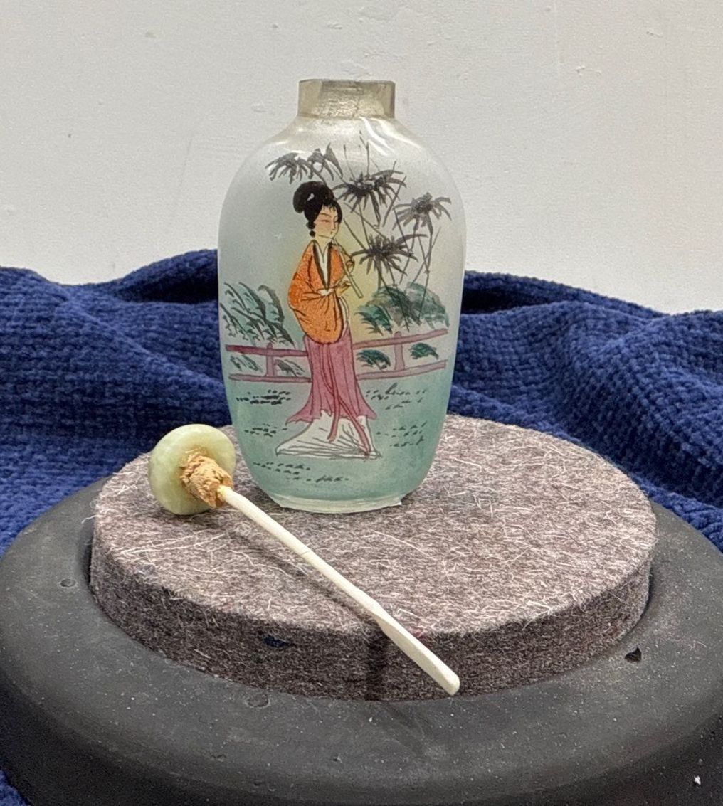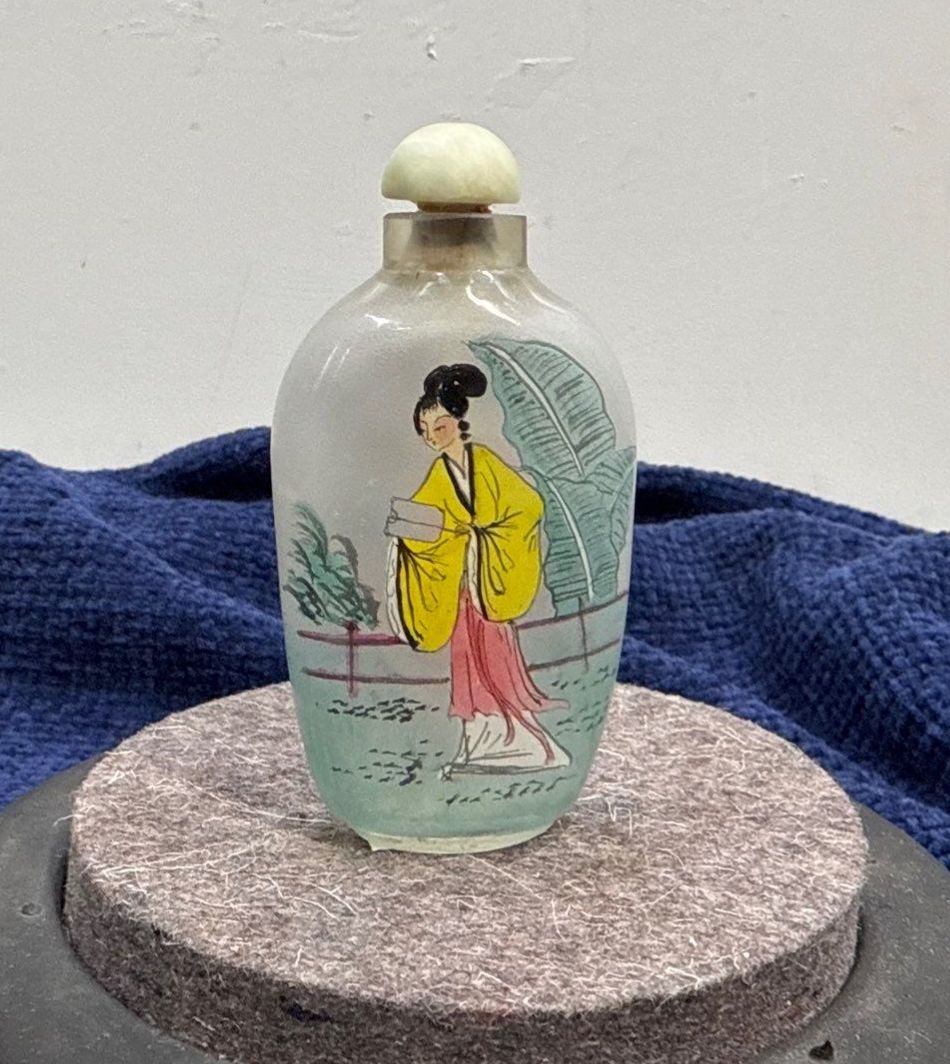 Hand Painted Glass Snuff Bottle with Spoon 2.5H