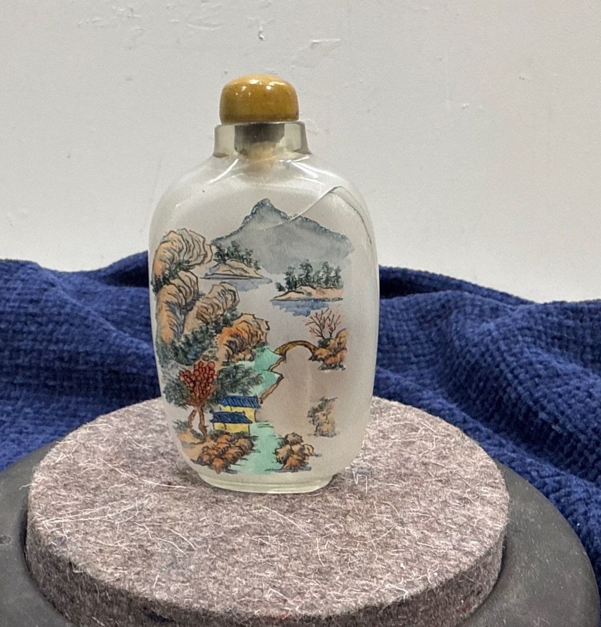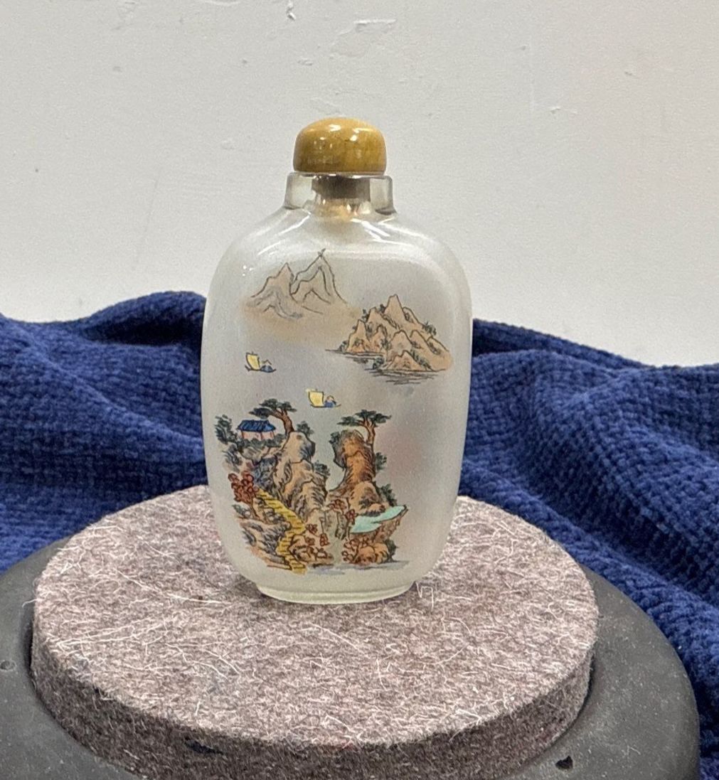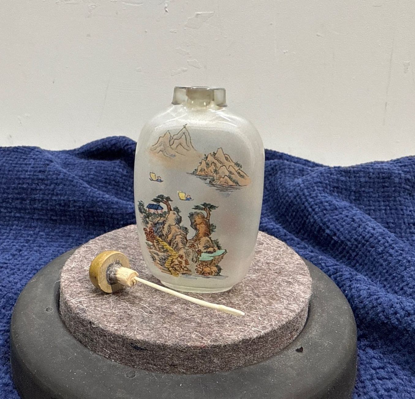 Hand Painted Glass Snuff Bottle with Spoon 2.5H