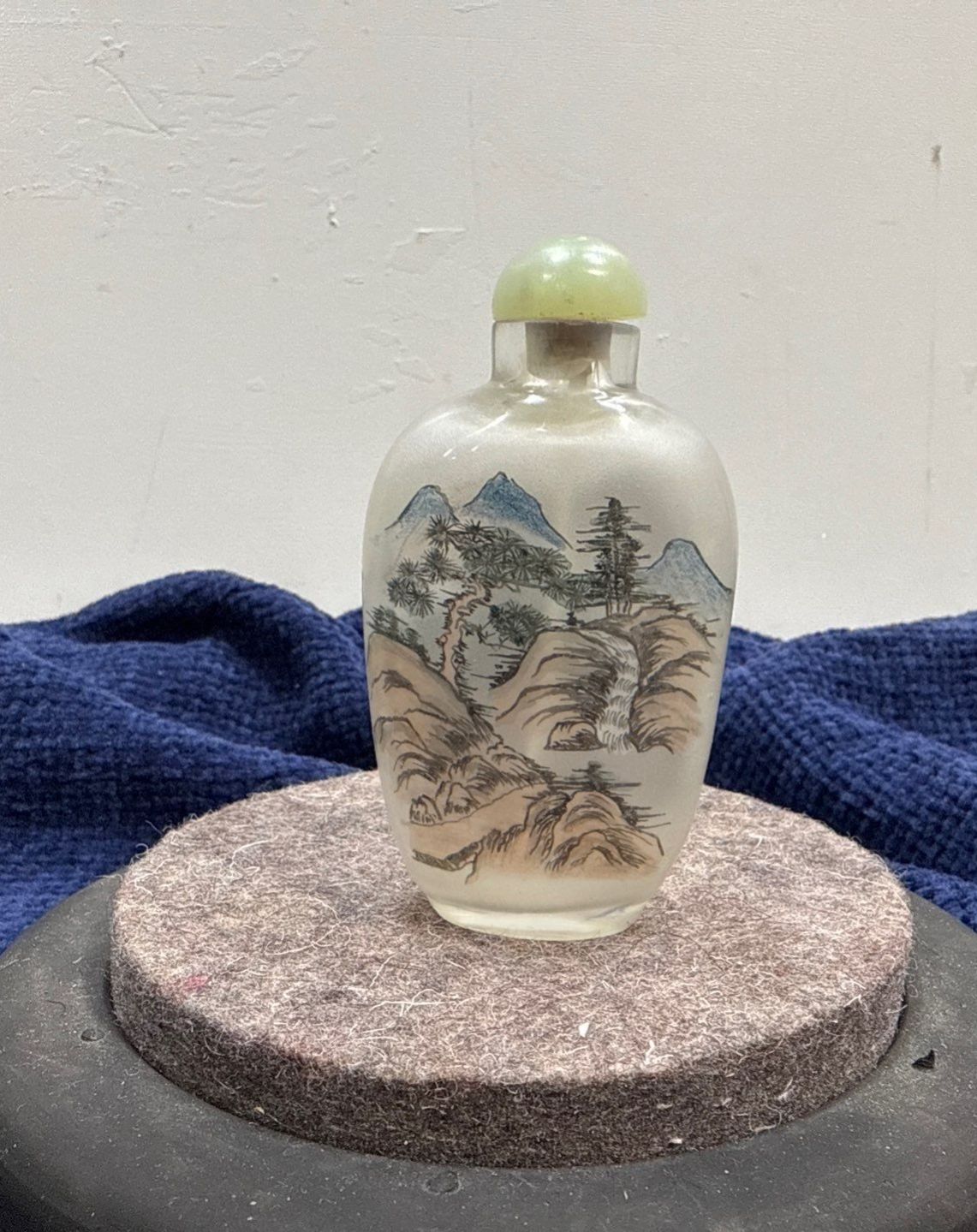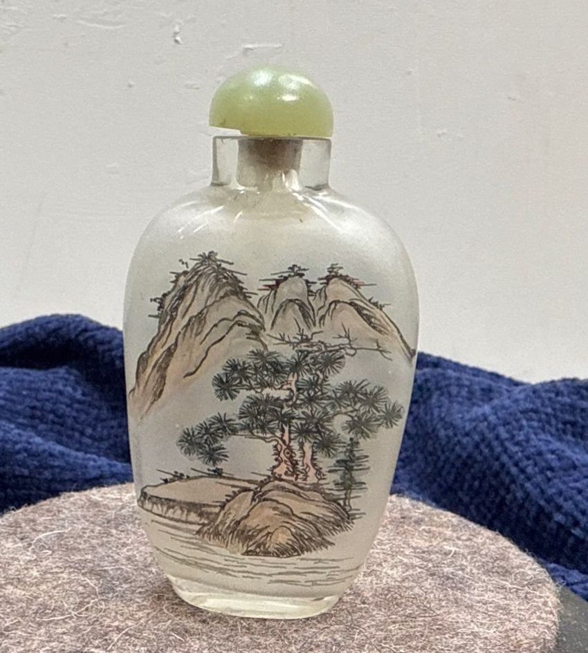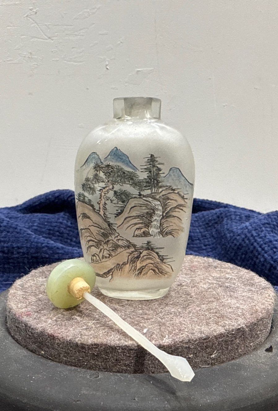 Hand Painted Glass Snuff Bottle with Spoon 3H