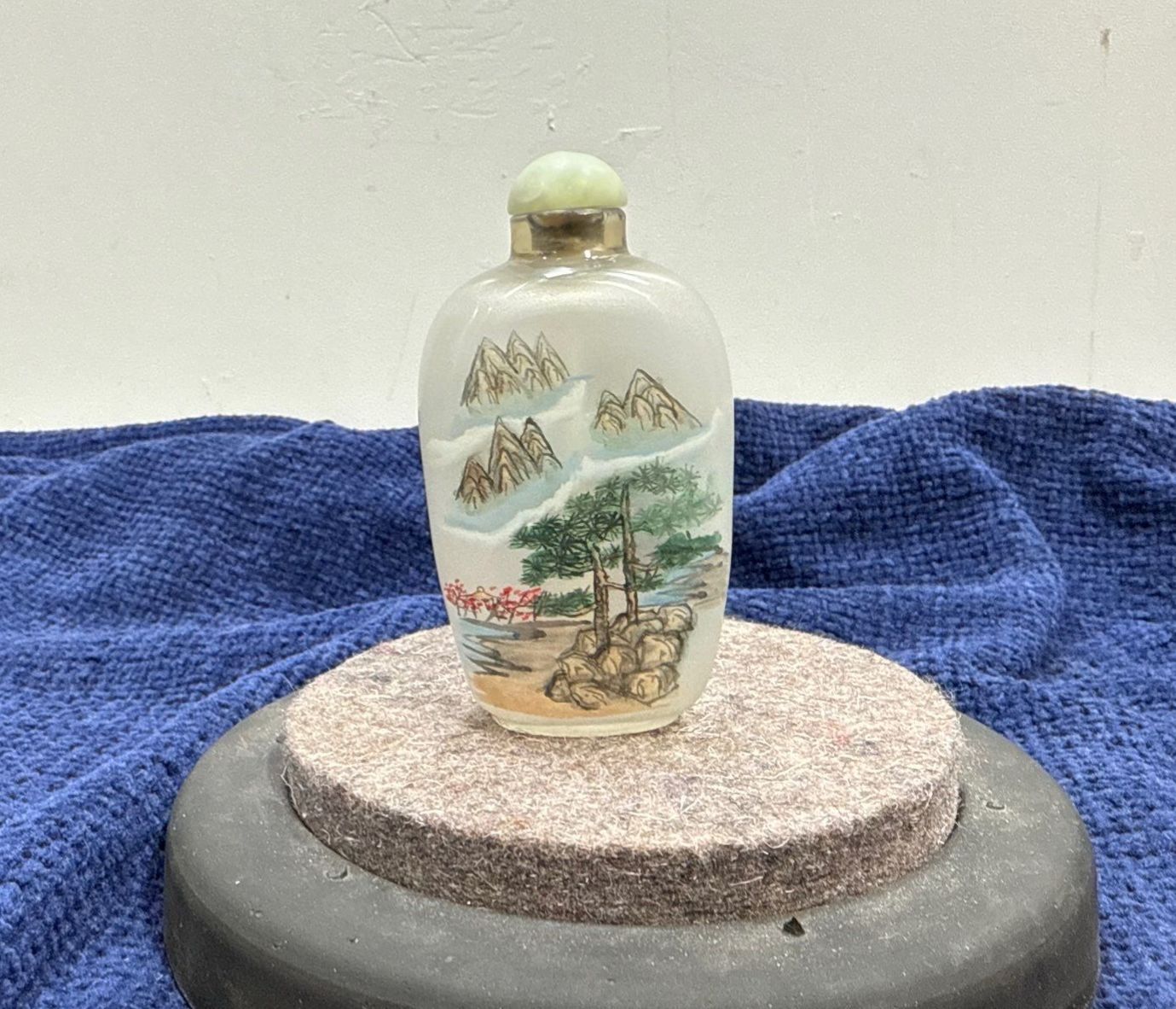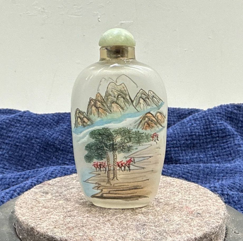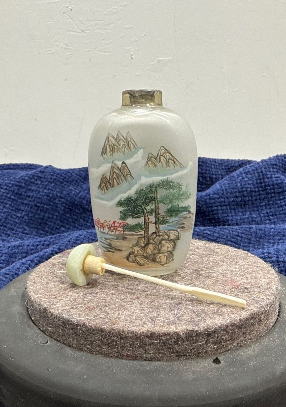 Hand Painted Mountain Scene Snuff Bottle with Spoon 3H