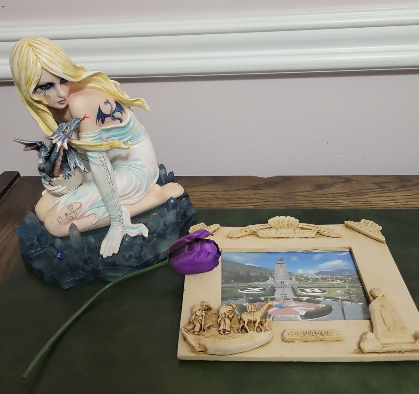Hand Painted Nemesis Now Fairy Figurine "Giada" w/ Equador Souvenir Photo Frame 8x5