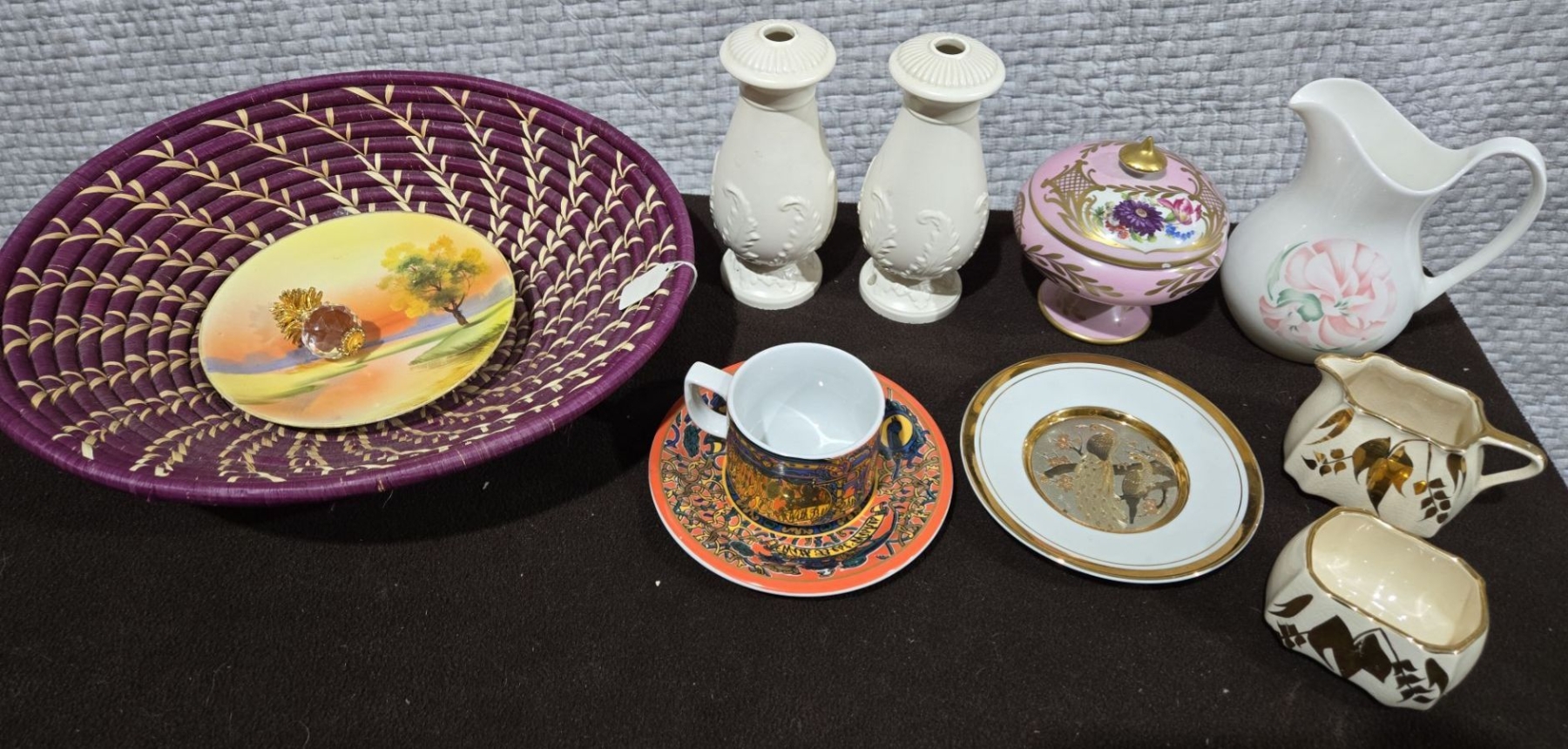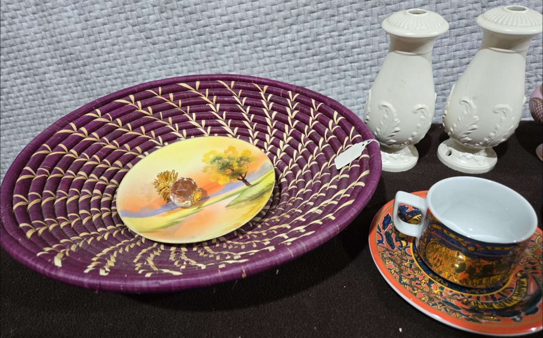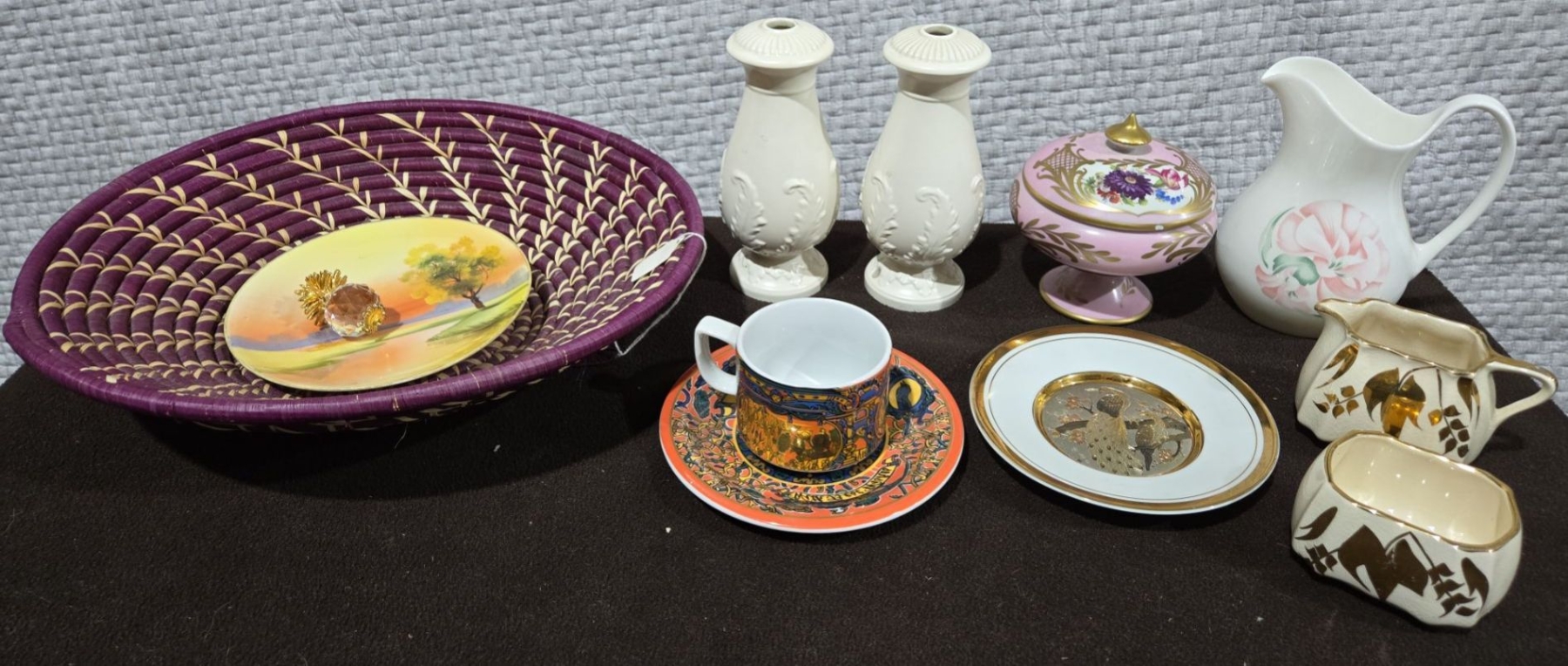 Hand Woven Purple Basket, Pineapple Crystal, Lidded Trinket Dish + More